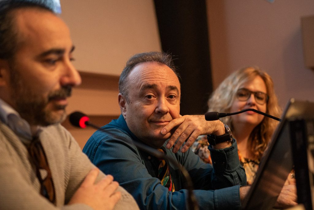 Los autores durante la presentación del libro junto a Adrián Otero, de Libros El Laberinto. FOTO: MANU GARCÍA.