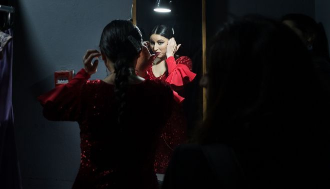 Entre bastidores, María Vizárraga escucha atenta. Sobre las tablas, Miguel Lavi y Antonio El Pulga acompasan sus cantes con los movimientos estratégicos de Gema durante la función. Jesús Agarrado El Guardia, padre de la protagonista, ensaya unos acordes fuera de escena. "Vamos a hacer lo que mejor se nos da, otra cosa no sabemos", le dice a su equipo artístico antes de pasar corriendo a los camerinos. Toda una declaración de intenciones de lo que va a ser su espectáculo, que abandera el "flamenco tradicional" y "huye de los silencios".