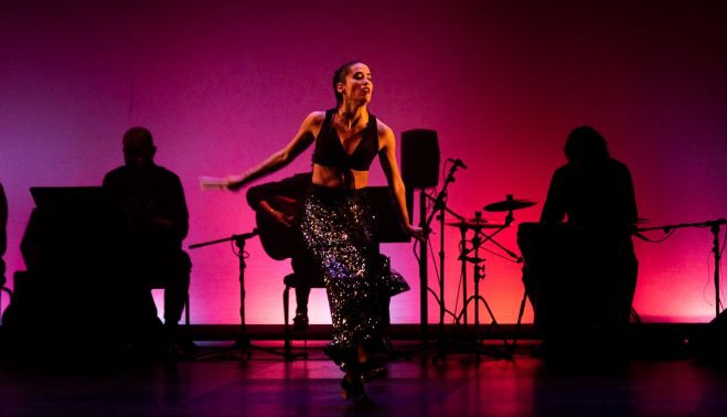 El libreto que ha ideado Francisco López, director de escena habitual en los montajes de Kojima y un clásico ya en la dramaturgia flamenca, es de una abundancia que a veces abruma. Viaja rápido el espectáculo: de la rotunda Ana Latorre a los pasos a dos, a los movimiento grupales, al coro. Aparece vibrante, de ida y vuelta, con abanico y como una serpiente con lentejuelas y rebosante de sensualidad la mexicana Karen Lugo; y casi sin tiempo hay una eclosión de clásico español y escuela bolera. Puntas y palillos en un paso a dos entre Carmen Coy y Daniel Ramos que deja sin aliento: no solo por la destreza de la que hacen gala, sino porque lo interpretan todo como si no pasara nada. Y pasa. De hecho, en hora y media no paran de pasar cosas.