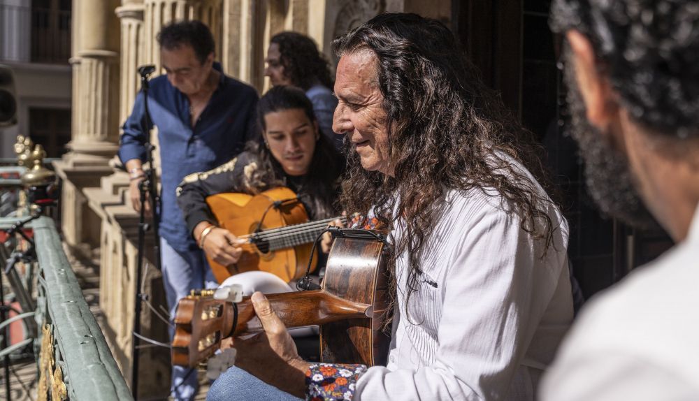 Por partida doble, el tocaor almeriense regresa a Flamenco On Fire como una de las grandes figuras de la duodécima edición del ciclo y, en la mañana del sábado, iniciaba su escala más especial en la gira de 2025. Por un lado, con el anticipo que ofrecía desde el balcón del Ayuntamiento de Pamplona. Acompañado por su hijo José del Tomate, Israél Suárez Piraña a la percusión y las voces de Kiki Cortiñas y Morenito de Íllora, interpretaba auténticos himnos del flamenco de los que él ha sido partícipe y protagonista.
