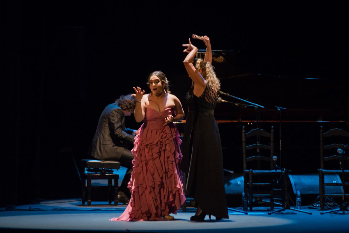 Cuando remató, pocos minutos después, a pecho descubierto la tanda de trilla, romance y martinete, todavía duraba el estremecimiento de unos ecos aplastantes, rotundos, que nos anclaban en la butaca sin poder resistirnos. Como transportados en una máquina del tiempo con el vello a flor de piel. La garganta de esta mujer es como si viajara (y nos hiciera viajar) por la noche negra de lo jondo hasta encontrar el eslabón perdido. Pero no es solo su chorro de voz, su jondura extra virgen, es también su insólito saber estar en el escenario, su conexión permanente con su público, y la puesta en escena —elegante, sobria, jugando bien con todo el proscenio y con la iluminación, con sus músicos, con sus artistas invitados…—, y su acierto por arrinconar lo que suena pasajero y darse casi por entero a lo cabal y a lo eterno. Como si quedara ya a años luz de distancia aquella niña tímida que vimos debutar hace unos años empujada por su padre Fernando y su familia en la peña jerezana a la que da nombre su abuelo. O como si ya fuera otra aquella cantaora repleta de cualidades y potencial, pero aún dubitativa y exceso de potencia, que disfrutamos hace medio año en el marco del pasado Festival de Jerez.