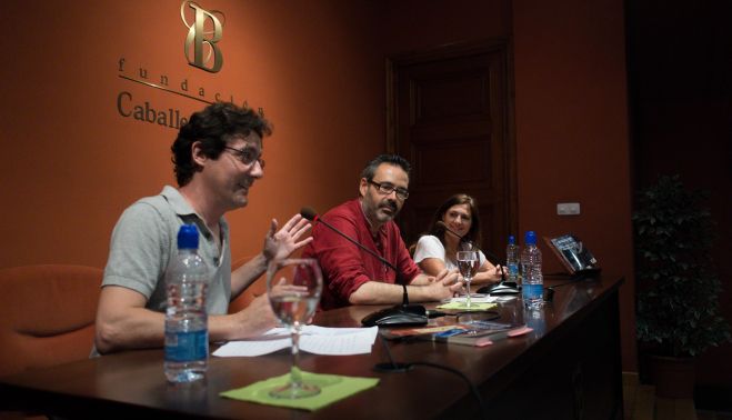 Luis Miguel Fuentes nos habló del origen de la novela y de su concepción de la literatura. Y lo tiene muy claro. La literatura se tiene que distinguir del cine, de la televisión, del cuento de campamento… “No es que el libro sea un pasatiempo burgués o un objeto mercantil, es que lo han convertido en una cosa hortera: es un chicle que se masca, un consolador de bolsillo, un laxante…” Ante tanta banalidad, Luis Miguel nos recuerda que en literatura “la lengua sólo tiene una cosa que hacer, y es decirse a sí misma”, como afirmaba Umbral. La lengua y el ser humano diciendo sobre sí mismos todo lo que pueden expresar, con cada palabra, con cada idea. Unir palabras para que brote el misterio, para que surja la realidad. Por eso la poesía es la más alta literatura, señaló Luis Miguel. Como la poesía es demasiado fragmentaria, “si la colocamos en un caja más grande, con personajes, con historias, más allá de la mera narración de cosas que ocurren, si buscamos ese marco, ese pasamanos que dé continuidad al lenguaje poético”, quizás surja un novela que permita reflexionar sobre lo humano, que es lo que ha pretendido el autor. Sin caer en el esteticismo o en el formalismo, insistió en que “la forma también es fondo”. Pudimos dialogar unos minutos con el escritor.