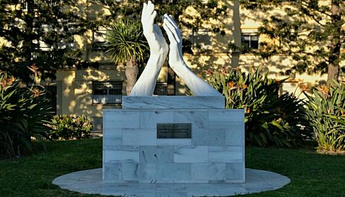 Es una obra simbólica que homenajea la labor de los profesionales sanitarios y de los sectores esenciales durante la pandemia del covid-19; unas manos en forma de aplauso que recuerdan aquellos con los que cada día, a las 20.00 horas, durante el confinamiento, se agradecía su trabajo.