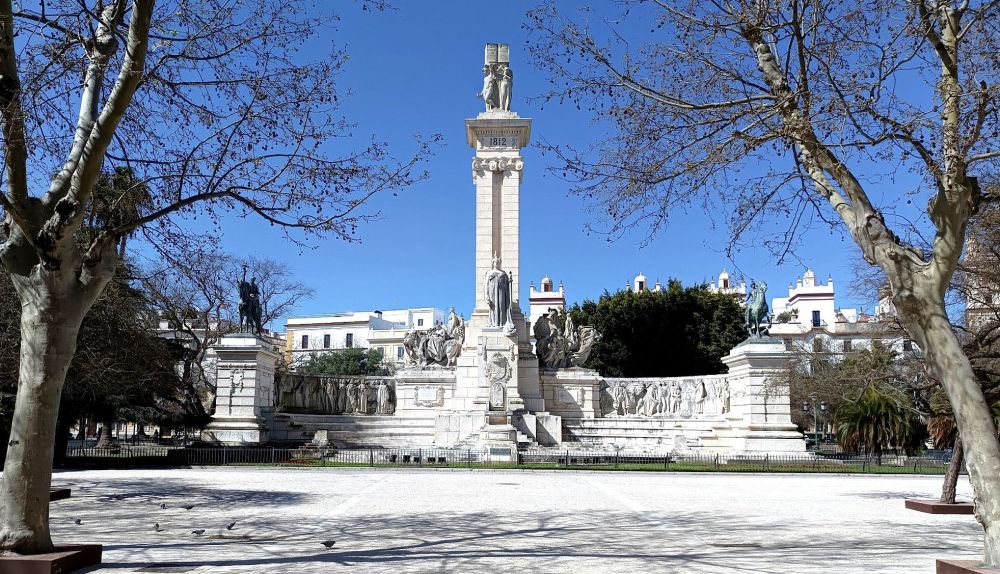 El monumento a las Cortes y el Sitio de Cádiz se ubica en la plaza de España. Fue levantado entre 1912 y 1929; no hay fecha de su inauguración oficial. El proceso de erección de este símbolo de la libertad fue largo y complejo.