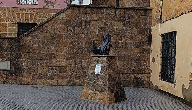El busto de Manuel Moreno se coloca sobre un pedestal tronco-piramidal aplacado en piedra ostionera; (de 135 cm de alto, y de 50x40 cm en el lado superior). Este material lo integra en la fisonomía del barrio de Santa María y en los restos de la muralla urbana cercana.