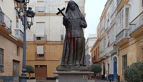 El monumento a Santa Ángela de la Cruz está situado en la Plaza de las Viudas, cerca de la casa (donada por una familia gaditana) en la que, en 1984, se ubicó la comunidad de la orden de las Hermanas de la Cruz en Cádiz, con motivo del 25.º aniversario de esa fundación.