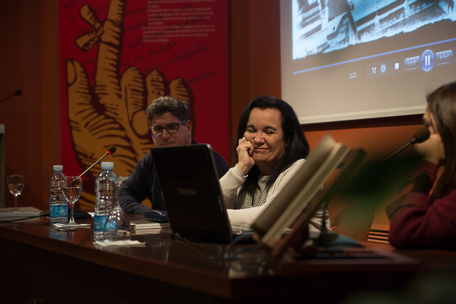 A través de las preguntas de Antonio Díaz, la escritora de San Fernando nos habló de su escritura. “Tengo tres novelas y cada una de ellas es diferente”. Le encanta crear historias. Eso es lo esencial. Nunca se plantea etiquetar sus novelas. Pero reconoce que sí que le gusta mucho el género policíaco. Cuando era pequeña la literatura llegaba a su casa con Círculo de Lectores. Recuerda que uno de esos libros fue Diez negritos, de Agatha Christie. Fue la primera vez que sintió un deseo imperioso de volver a casa para seguir leyendo. “Tenía muchas ganas de meterme en este género, aunque es muy complicado”.