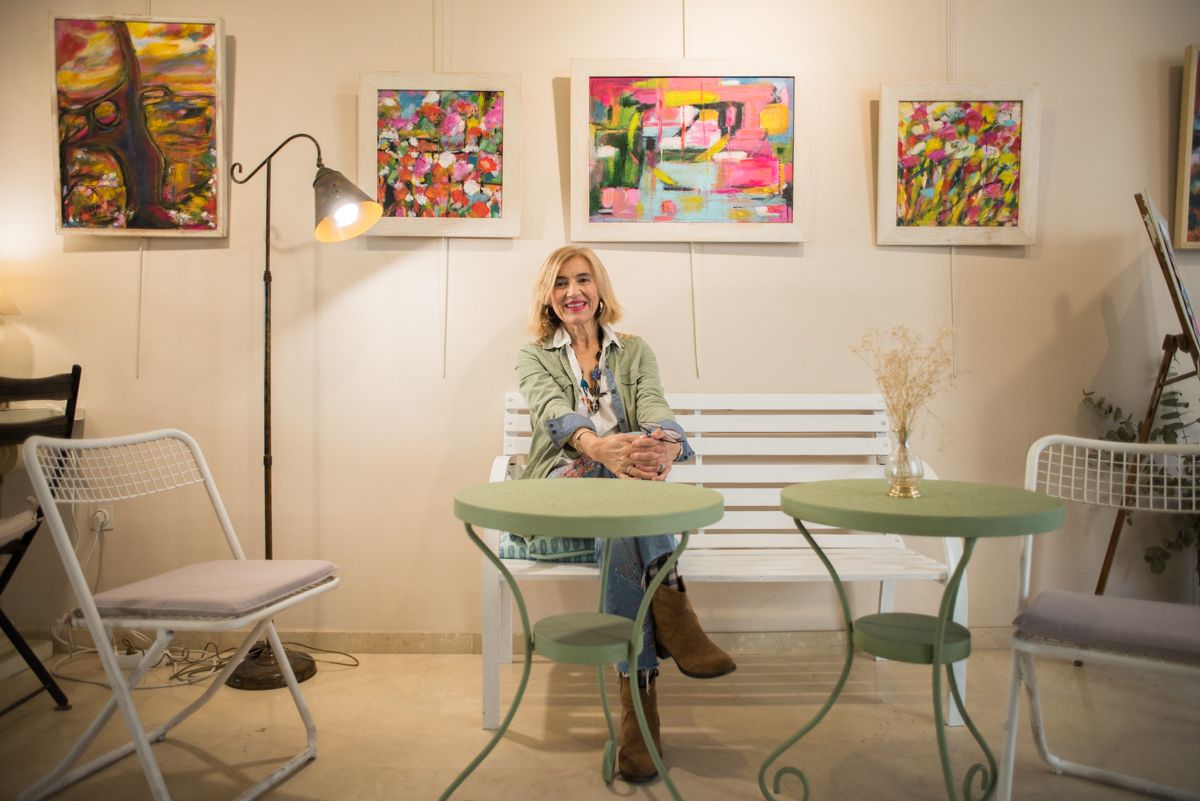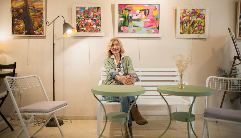 La periodista y artista extremeña Isabel Flores junto algunas de sus obras en Espacio Abierto. FOTO: MANU GARCÍA.Y esta última, Luminosa, "dedicada a mi madre porque ella era así, luminosa. Me daba mucha luz y mucha energía. Es todo un homenaje a ella, por persona amada, buena y muy necesaria", explica la artista extremeña. En sus cuadros —acrílico sobre lienzo– la luz y el color imperan. "Tienen vida, luz propia, reparten optimismo, mucha energía y en la exposición es lo que transmite. No quiero algo triste, quiero tenerla y recordarla como algo alegre", agrega.