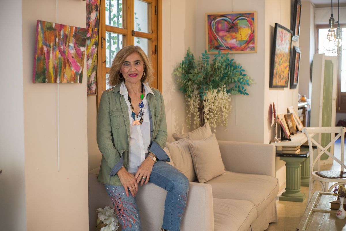 Ella mira al lienzo y lo impregna de color. "Solo imagino", incide. "Cuando yo pinto, no tengo una fotografía al lado para poder interpretarla, trabajo desde la imaginación", insiste. Y las temáticas de sus muestras van variando en base a sus experiencias vividas. "La vida, las historias, las pérdidas... Lo que te va ocurriendo te va haciendo diferente y te va moldeando la personalidad", expresa. Y es que todas sus muestras guardan relación con su estado de ánimo: A mi aire, Mirada, Pasiones, El tiempo entre pinturas, Vuelta a empezar —tras una operación—...