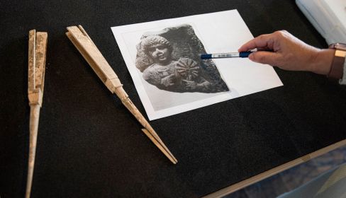 "Nos llamó mucho la atención la aparición de dos elementos iguales y sin uso definido sobre un sarcófago de plomo", señala la conservadora del Arqueológico, Julia Herce. "Abrimos una investigación, estudiamos al detalle las piezas ‒morfología y materiales, principalmente‒ y abrimos consultas con otros museos para, finalmente, poder determinar que se trata de uno de los abanicos romanos de mayor tamaño conservados hasta el momento", recalca.