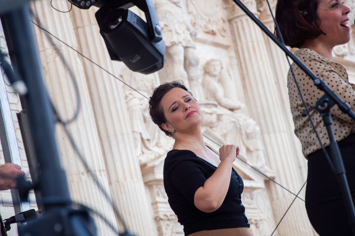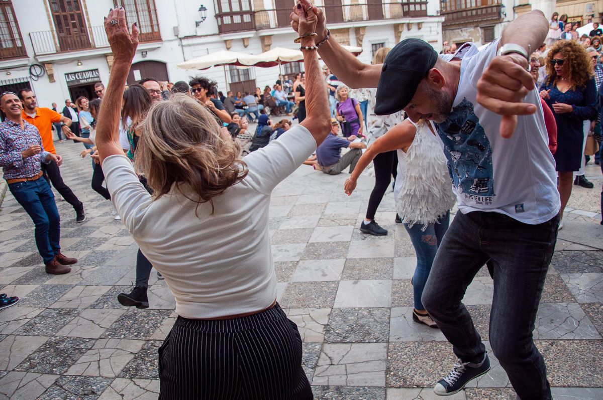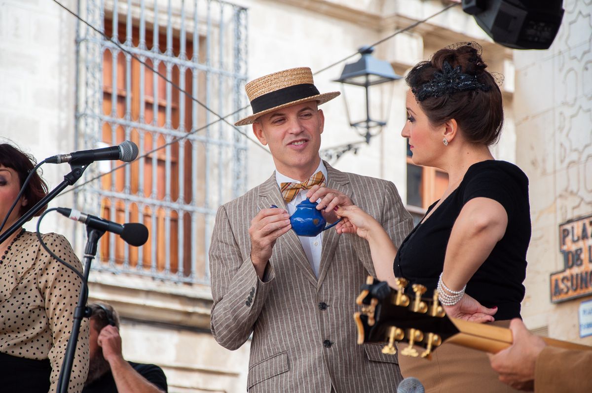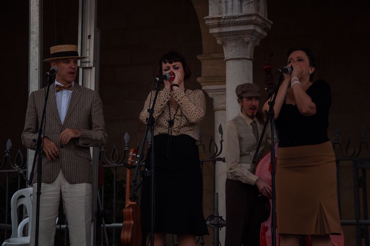 De forma casi paralela, a las doce del mediodía, la plaza Plateros se convirtió en una pista de baile. A ritmo de swing y armonizados por El Domador de Medusas, el conocido grupo gaditano Aro que Swing instruyó a decenas de parejas a bailar sin miedos y de forma espontánea. Un preludio de lo que constituiría la actuación de O' Sister! en la plaza de la Asunción y la sesión de Swing y Dixieland, una jam session que conquistó a los presentes con unos atuendos singulares que recordaban a otra época. Poco después, en la Alameda del Banco, la fadista Carla Pires, trasladaba a los asistentes a Portugal con una elegante actuación con un cielo que ya hacía prever que la tarde iba a ser complicada.