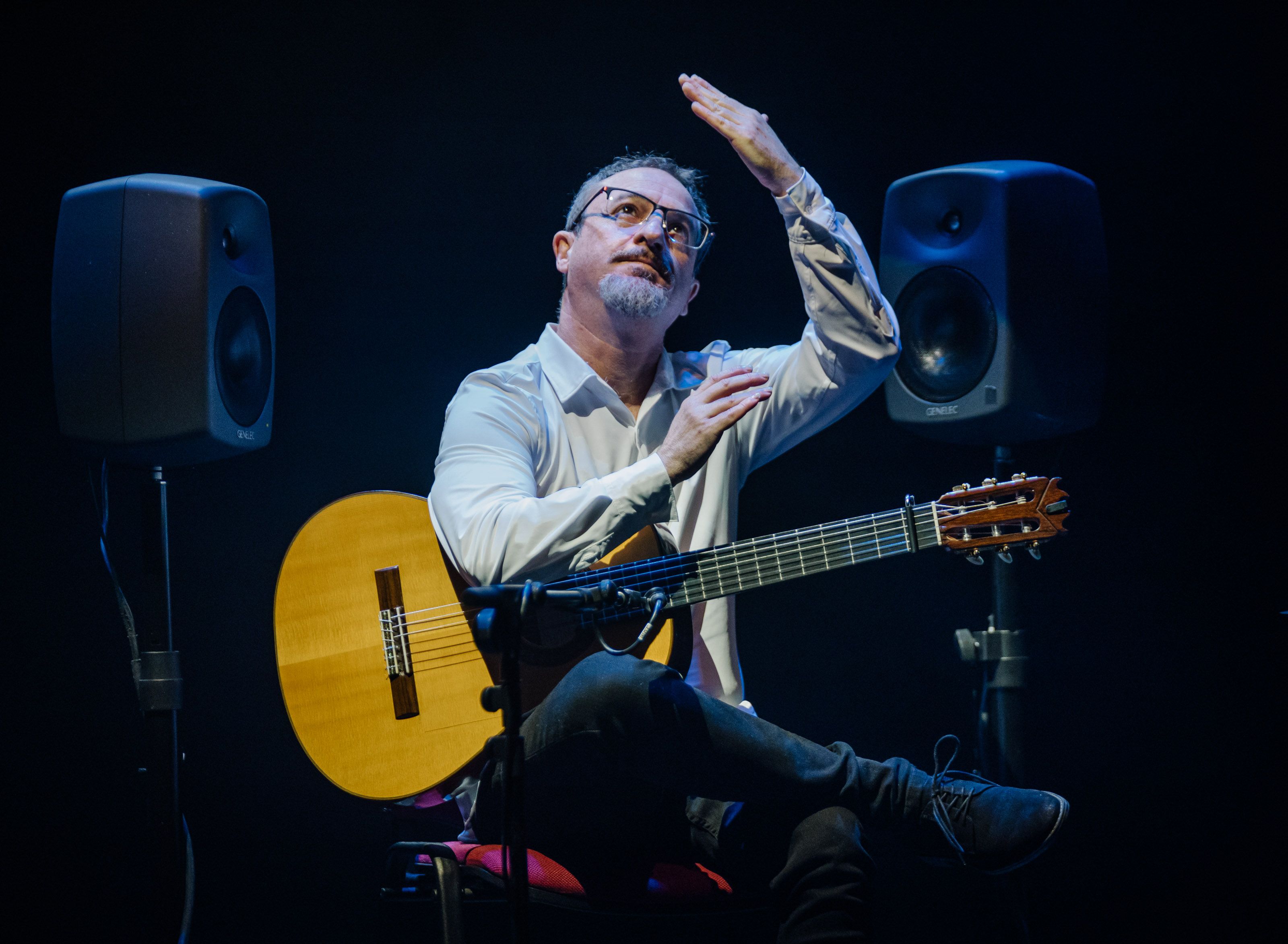Y lo mismo que le dedicaba el concierto a Paco de Lucía, que gran parte de culpa tiene de que él sea guitarrista y por eso “este concierto, mi música y mi corazón va para él”, también tenía tiempo de acordarse de Santi Lara “que sé que está por aquí y es otro pedazo de guitarrista” o hasta del "asesor que me lleva las cuentas”.