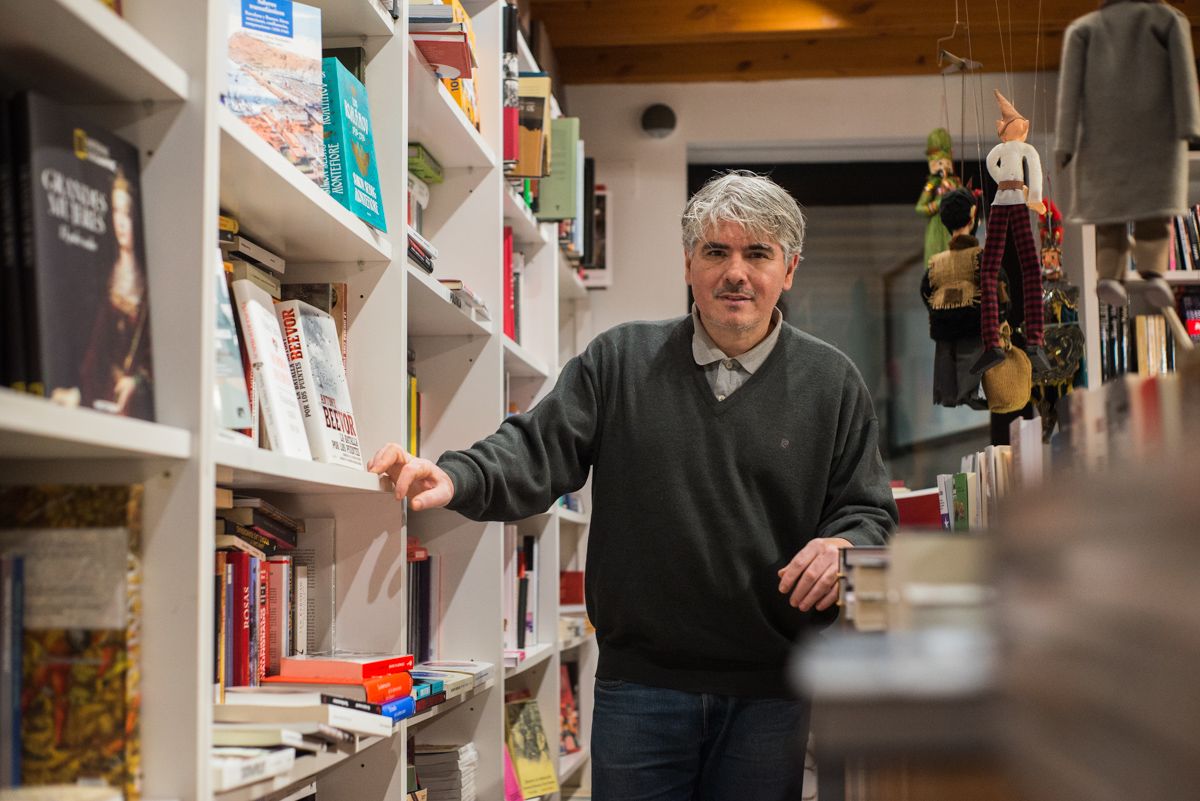No le busquen en Twitter o Facebook, no le encontrarán. Quizás, en cambio, puede que sí se topen con él en alguna remota librería de viejo, sumergido entre cordilleras de libros. De niño, en casa de sus padres, no tenía muchos, apenas los del Círculo de Lectores. Peinando canas, acumulará entre 8 y 15.000. En Año Nuevo, en ese tiempo de buenos propósitos y suprimir adicciones, Juan Bonilla (Xerez —así lo escribe—, 1966) ha dado un paso adelante para superar la suya: reconocerla. Lo hace como mejor se le da, por escrito. Lo ha plasmado en La novela del buscador de libro (Fundación José Manuel Lara, 2018).