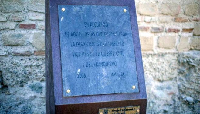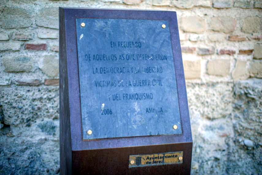 En la Alameda Vieja descansa una placa mohosa sobre un monolito, no es otra cosa que el único homenaje que la ciudad rinde a las víctimas de la Guerra Civil. Este recuerdo conmemorativo fue colocado en 2006 cuando los exalcaldes Pedro Pacheco y Pilar Sánchez gobernaban en coalición. El día de su inauguración no estuvo exento de polémica. El acto se vio empañado por pitos y quejas, los defensores de la memoria histórica pensaban que el homenaje no estaba a la altura y con sus protestas lograron desatar los gritos de Sánchez. “También pedíamos que retirasen la estatua de Primo de Rivera de la plaza del Arenal”, recuerda Paco Cuevas, actual secretario local de CNT.