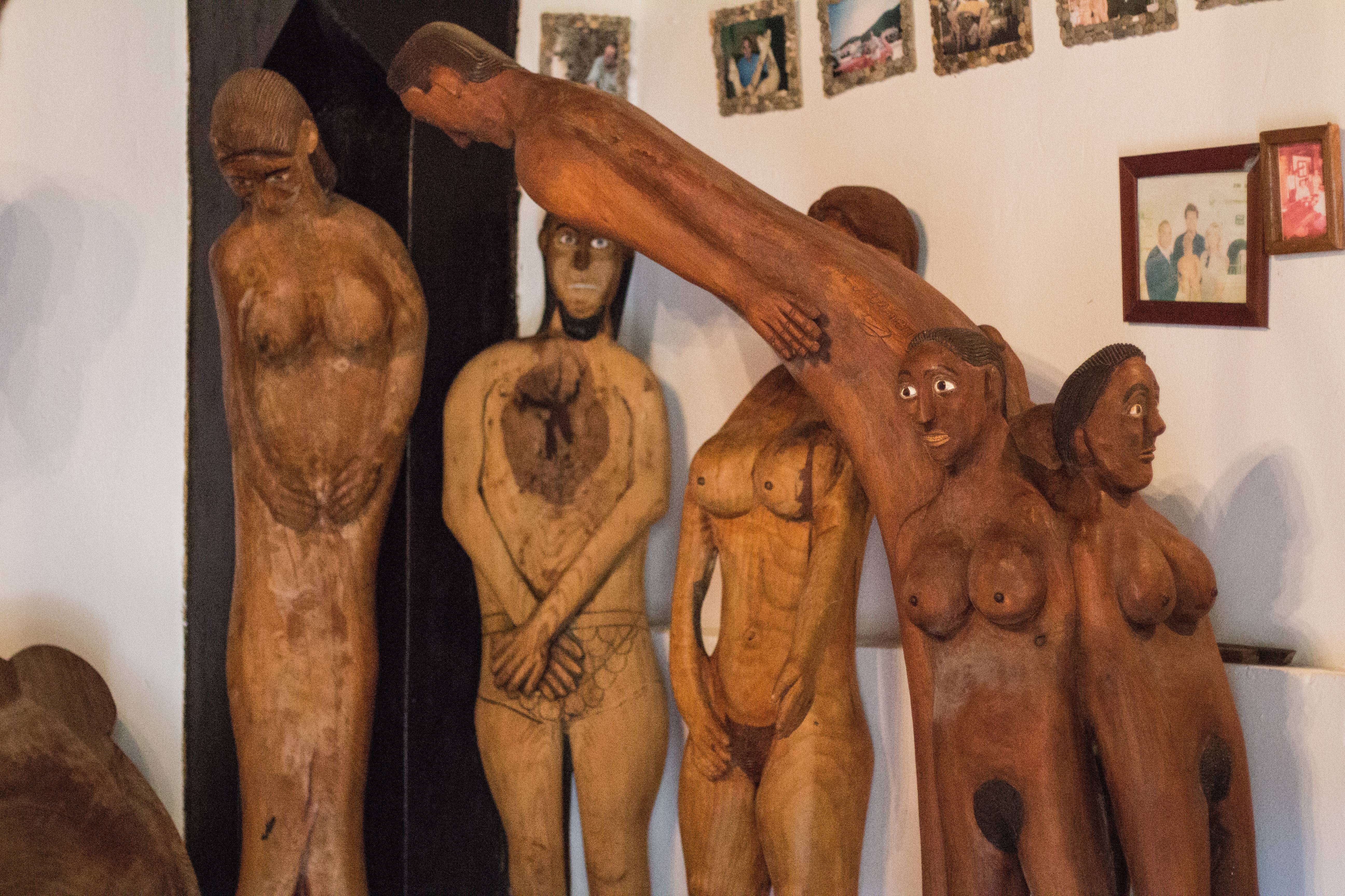 Detalle de dos de las esculturas. Foto: Sebastián Chilla.En la entrada, vemos algunas fotografías del artista trabajando la madera y también otras fotografías con personalidades del mundo de la cultura y de la política, entre las que se encuentra el benalupense y alcalde durante veinte años de esta localidad Francisco González Cabaña. La obra de Máñez llegó a ser conocida, sin embargo, lejos de la localidad gaditana. El artista benalupense expuso en localidades de toda España y el museo llegó a ser visitado por personalidades políticas europeas, estadounidenses o el ex-presidente Felipe González, que llegó a comparar su obra con la de Picasso en fusión con el arte africano. Otros han comparado la obra de Máñez con el arte azteca. Entre sus amistades, no sólo destacan personalidades políticas, sino también de otras esferas sociales, como es el caso de la Duquesa Roja, según nos cuenta la propia María.