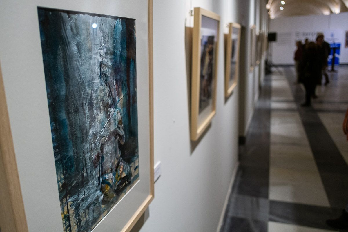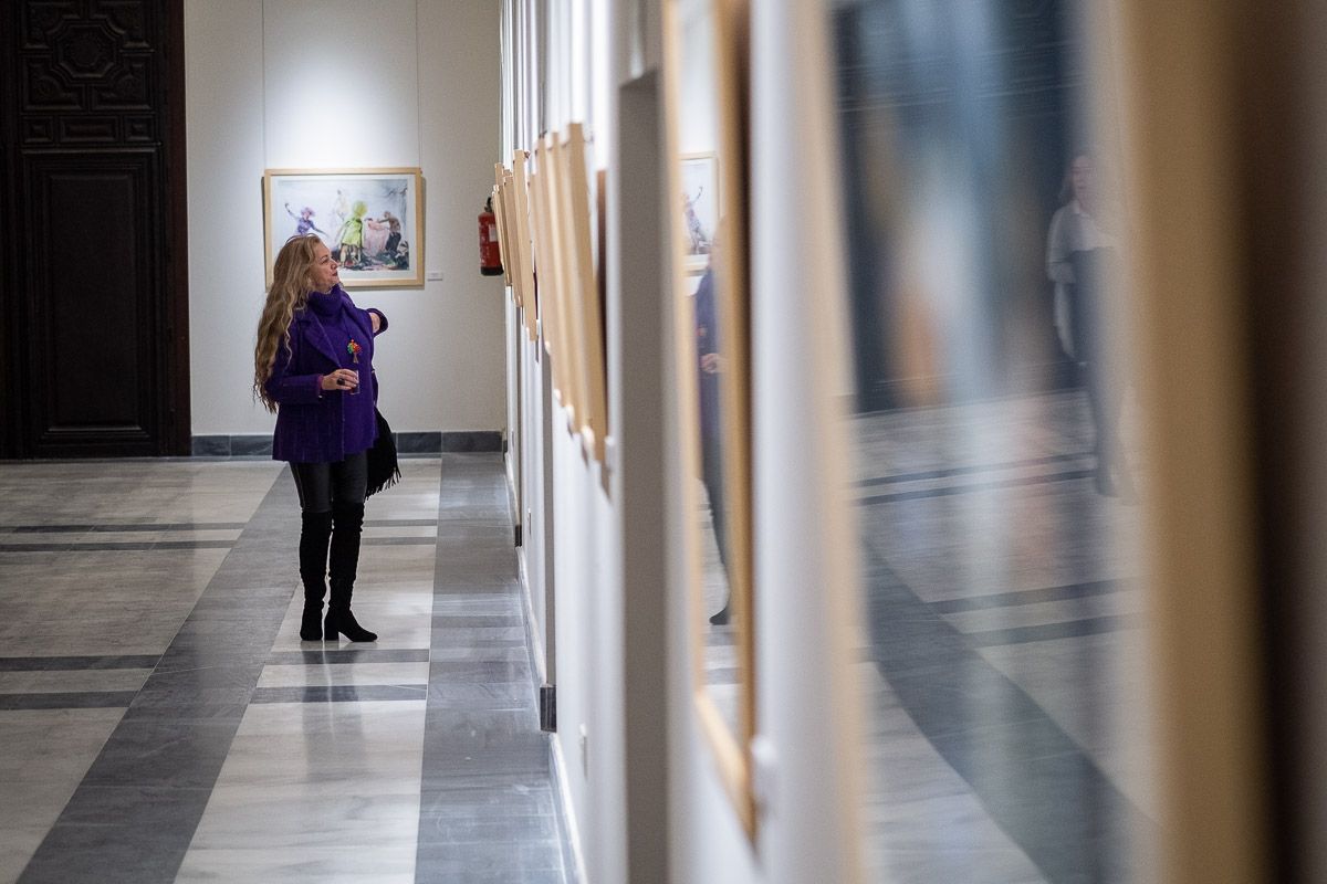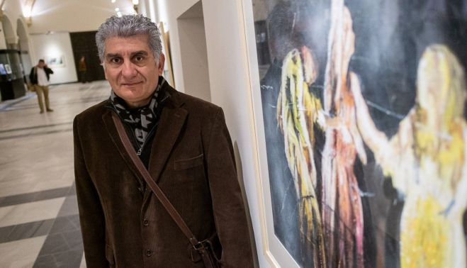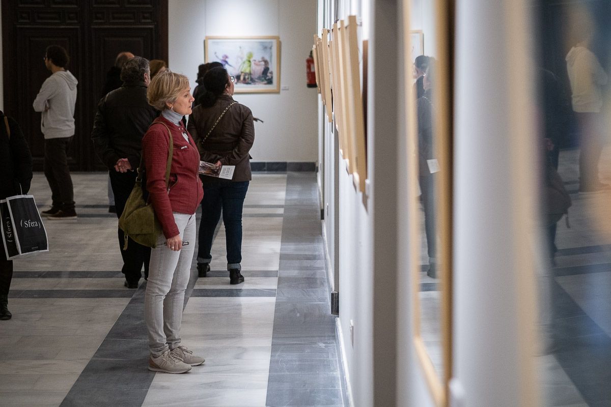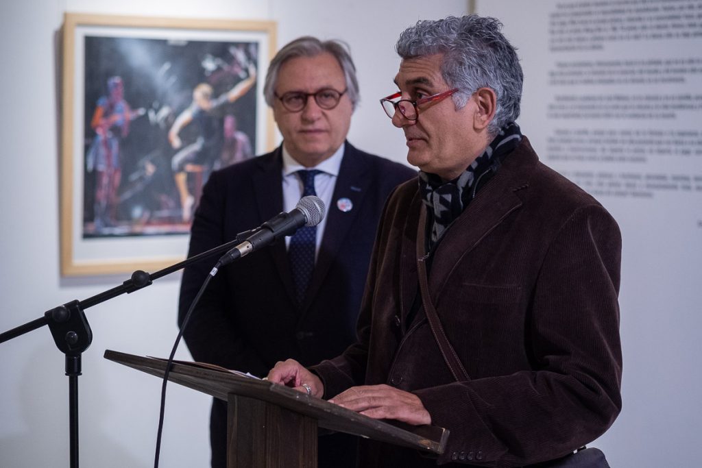 El pintor Juan Carmona, durante la presentación de la exposición, con el teniente de alcaldesa Francisco Camas al fondo. FOTO: MANU GARCÍA