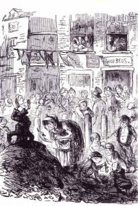 Caricatura de 1852 que muestra los efectos del cólera entre los barrios de trabajadores británicos en la revista 'Punch'.