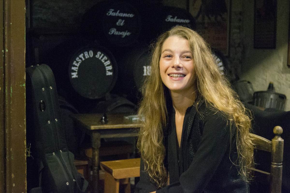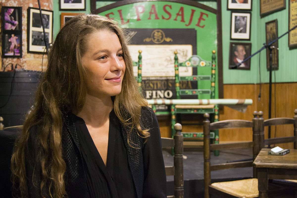Es complicado definirlo con palabras, pero una cosa que hay aquí en Jerez es la alegría de la vida, una chispa vital que sucede incluso cuando alguien coge una guitarra y toca una bulería, en ese momento todo el mundo quiere participar. No es normal lo que ocurre en Jerez, de repente una abuelita sale al escenario a tocar o bailar. En Jerez sienten mucho respeto por los que nos dedicamos a esto, yo puedo estar en mi piso estudiando, sin molestar a nadie porque notan que amas el flamenco y a la gente le gusta. Llevo más de ocho años enamorada del flamenco y su arte. En la India he estado tocando el sitar, también soy una gran aficionada a la música hindú clásica. Ahora solo lo toco incluso por seguiriyas. El flamenco es algo increíble, para mi aprender es un desafío del que nunca me aburro. Me levanto todos los días y tengo que mejorar lo que he hecho para coger la fuerza y el nivel necesario.