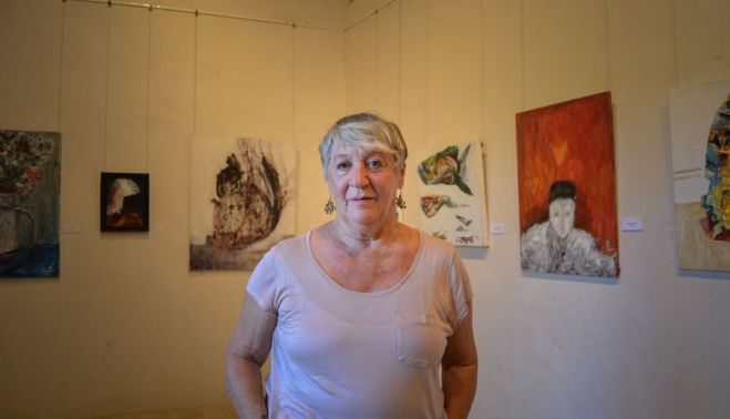"Cada vez que empiezo un cuadro termino con la imagen de un ser humano", confiesa Bernadette Bonnet (Sain Etienne, 1942). Son las cinco de la tarde y Berny —así firma sus obras esta artista plástica francesa— se encuentra en la sala El Molino del Alcázar de Jerez, custodiando su exposición Humain, disponible hasta el próximo 30 de septiembre. A modo de guía artística, Berny pasa los días en el conjunto monumental jerezano para explicarle sus obras a los visitantes. Dice que siente la necesidad de contar el porqué de cada cuadro, la historia que hay detrás de los colores que ella misma impone los lienzos con sus manos, con un trozo de madera o una tela.