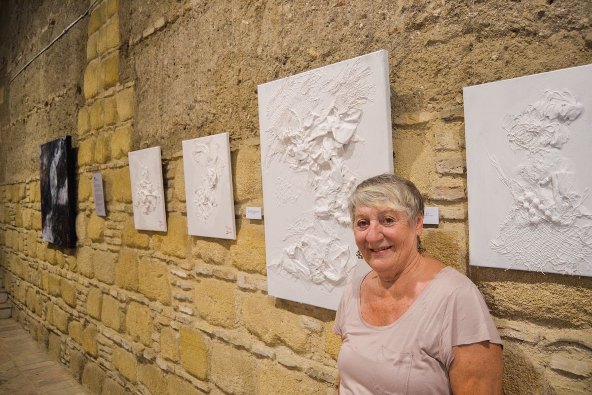 La artista francesa junto a otras de sus obras en la sala del Alcázar de Jerez. FOTO: CLAUDIA GONZÁLEZ ROMERO.
