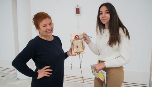 "Estoy más contenta con mi exposición", incide mientras echa un vistazo a las pocas piezas que por lo pronto ha podido colocar en las paredes de la sala Pescadería Vieja, donde expone por primera vez. Sus otras colecciones —la gran mayoría muestras de cerámica— han estado en otros espacios de Sevilla, Arcos, Jerez y Madrid, donde terminó vendiendo todas sus obras. Indica que su cerámica es creativa, muy vestida, con esmaltes de colores... "No hago cerámica utilitaria". No obstante, en Fémina, su última exposición, está más presente el reciclaje que la alfarería.