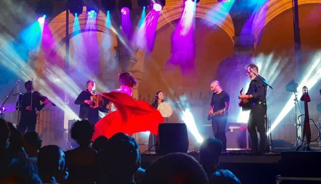 La jornada de la tarde se desplazó a la plaza de la Asunción, que alojó cuatro conciertos seguidos. Tras un tiempo para recargar pilas, fue el grupo jerezano Mixtolobo, junto al guitarrista Amir John Haddad, el que hizo una magnífica fusión del flamenco con otras músicas del Mediterráneo. Multiculturalidad y talento sobre el escenario.