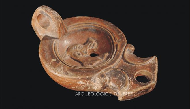 Según informa el Museo Arqueológico “las lucernas seleccionadas como pieza del mes proceden del hallazgo causal en la Cueva de la Motilla, situada en el extremos más oriental del término de Jerez en su límite con la provincia de Málaga, y ejemplifican el uso que tuvieron las cuevas con posterioridad a la Prehistoria reciente, tanto en época romana como medieval, vinculadas a diversos fenómenos (santuarios, refugio de pastores, ocupaciones ocasionales, eremitismo…). En las lucernas de volutas, cuya cronología se extiende desde el Principado de Augusto (27 a. C.-14 d. C.) hasta los inicios del siglo II d. C., se representan en el disco gran variedad de temas ornamentales: gladiatorios, eróticos, faunísticos, mitológicos, pastoriles, propagandísticos…”.