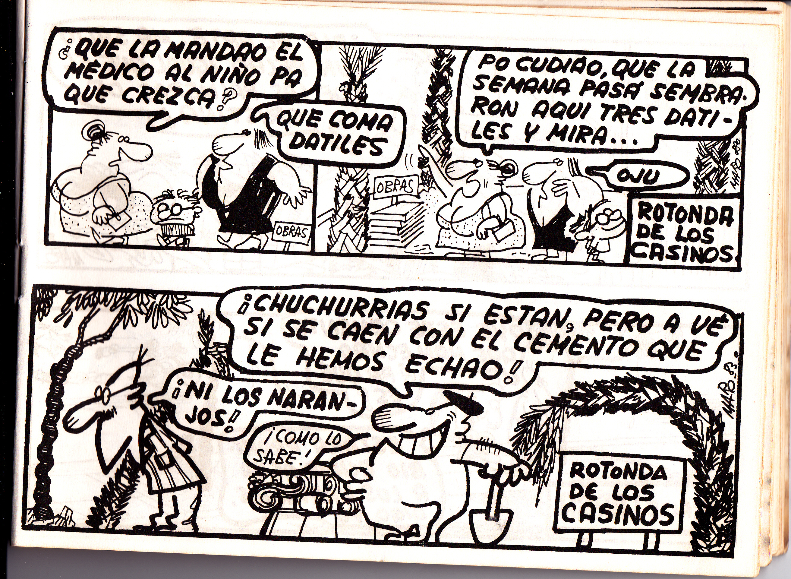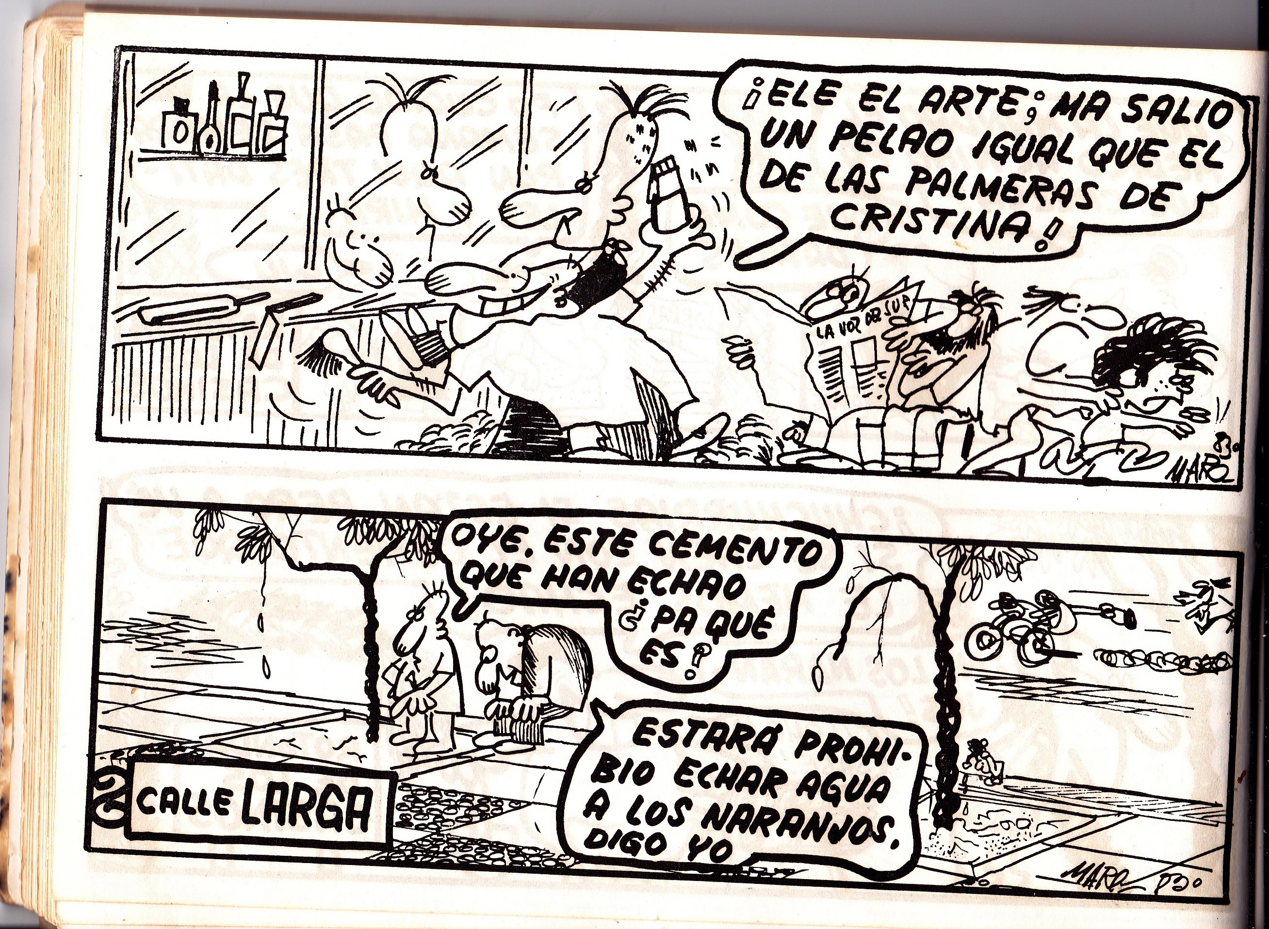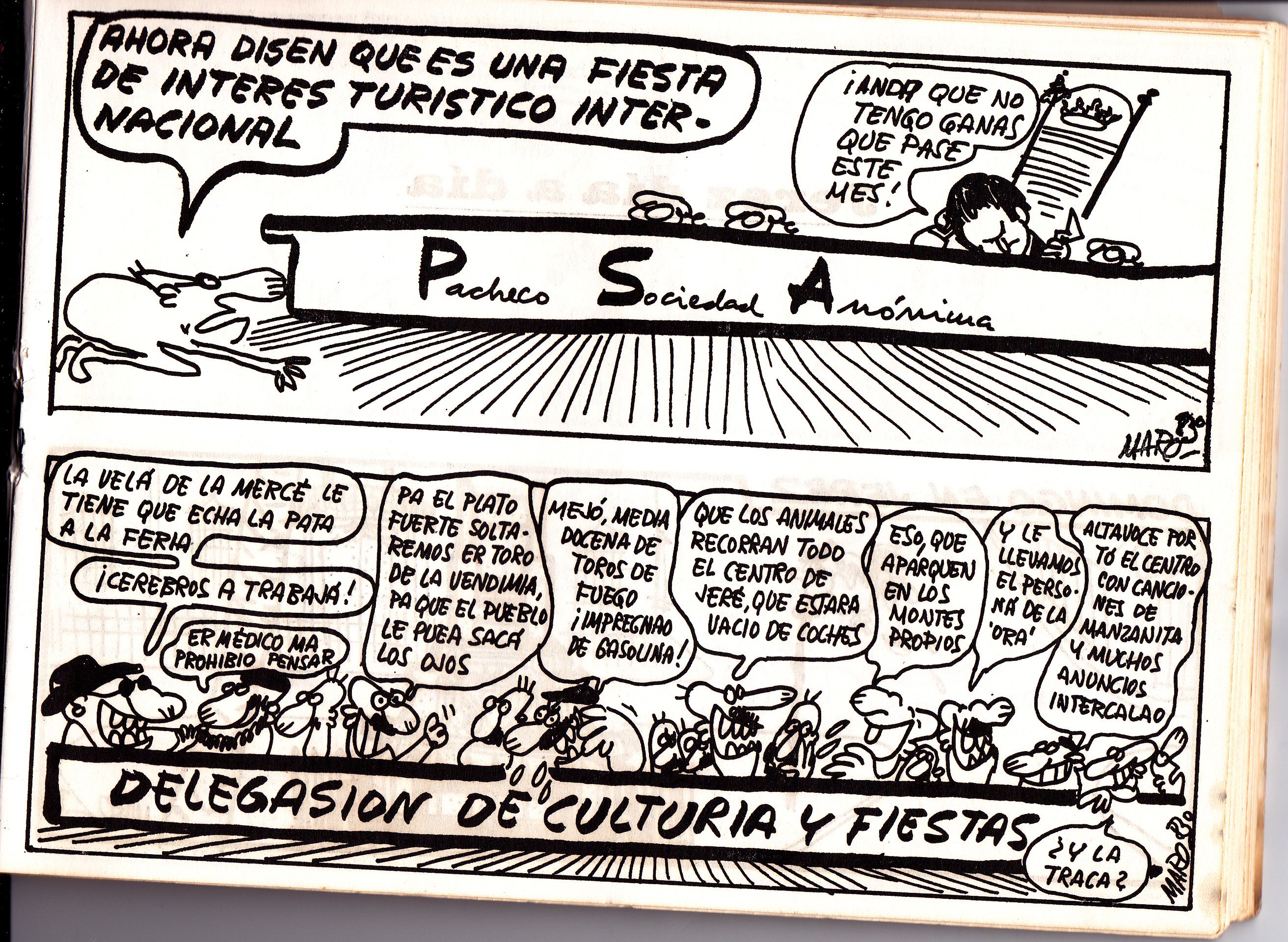 Seguimos con las tiras de Maro en La Voz del Sur en el año 1984. En esta ocasión las pintadas, la mugre, las palmeras y la desaparición de la Feria de la Vendimia son los temas que copan estas páginas.