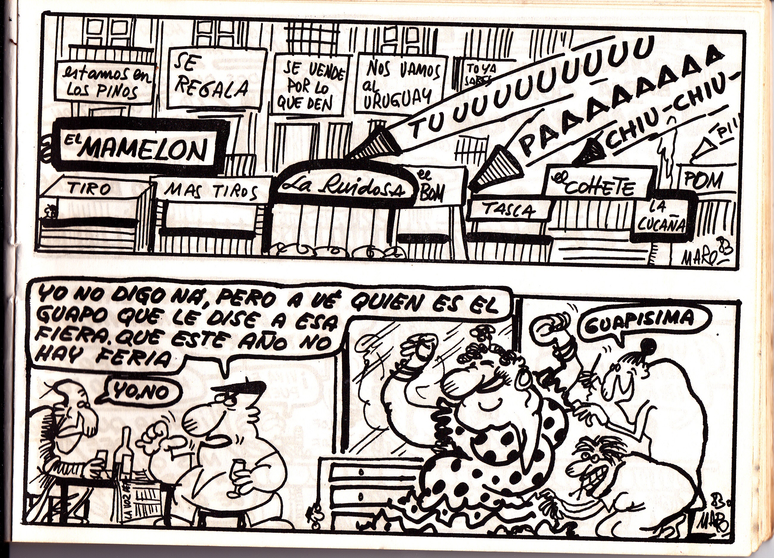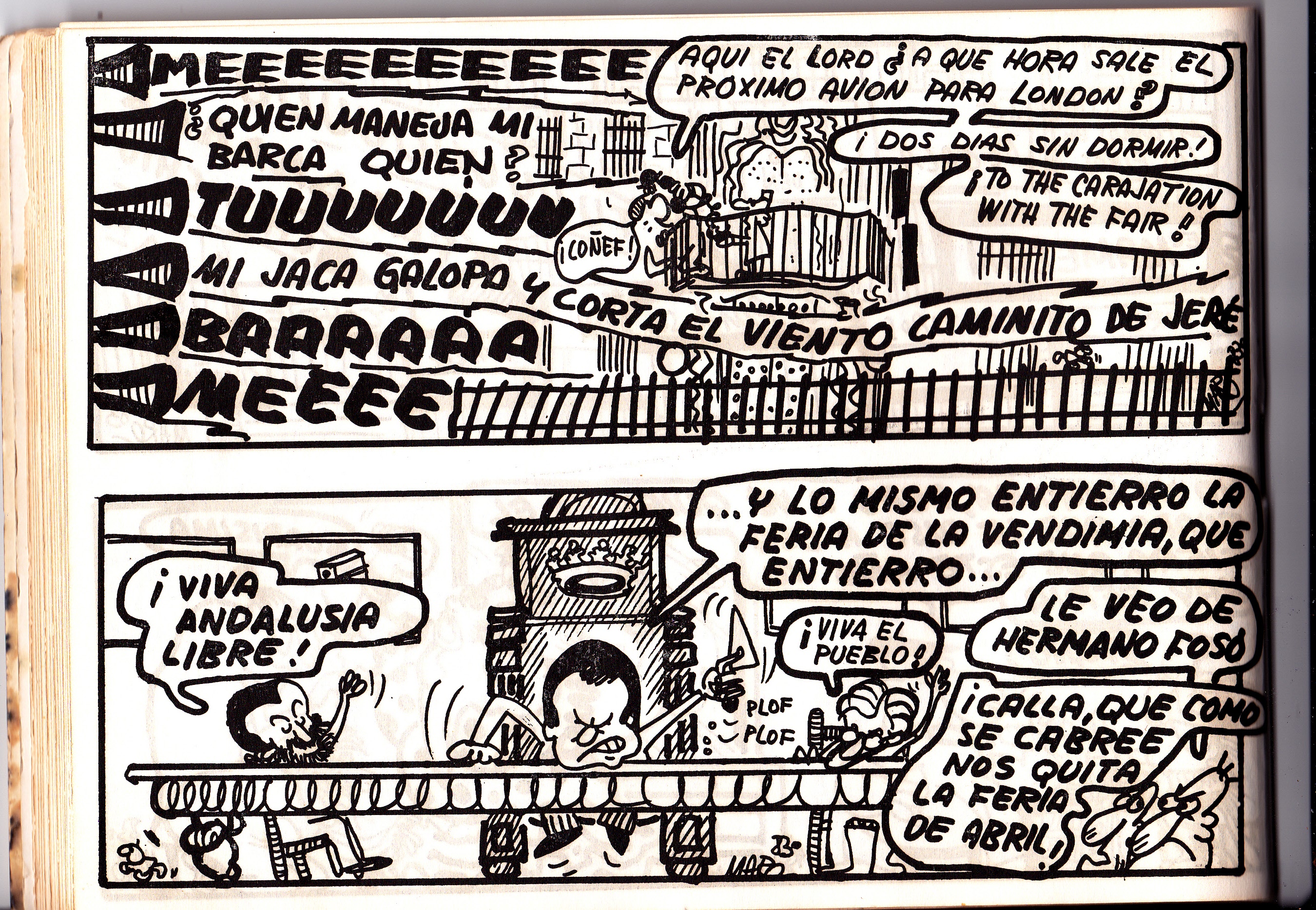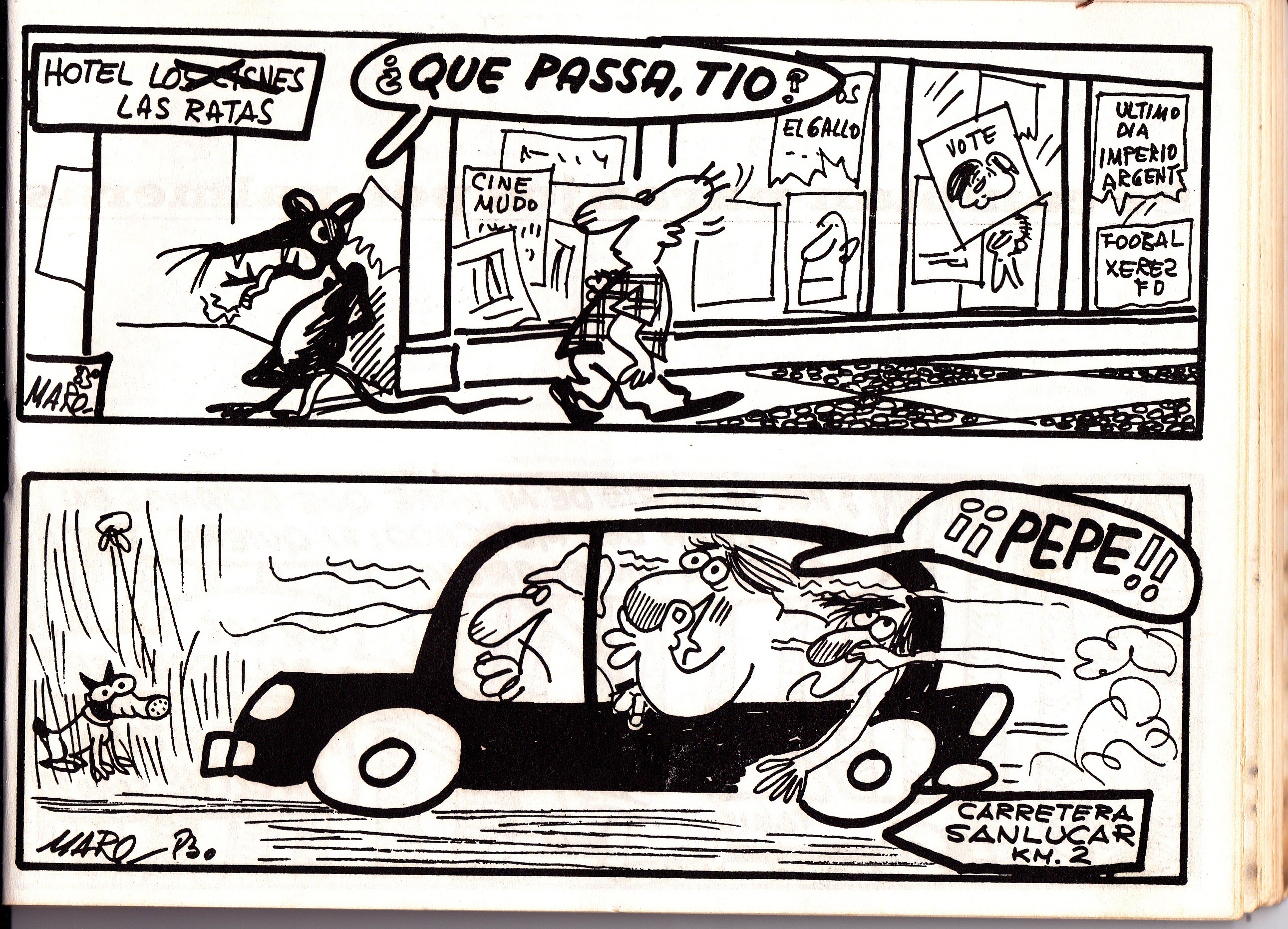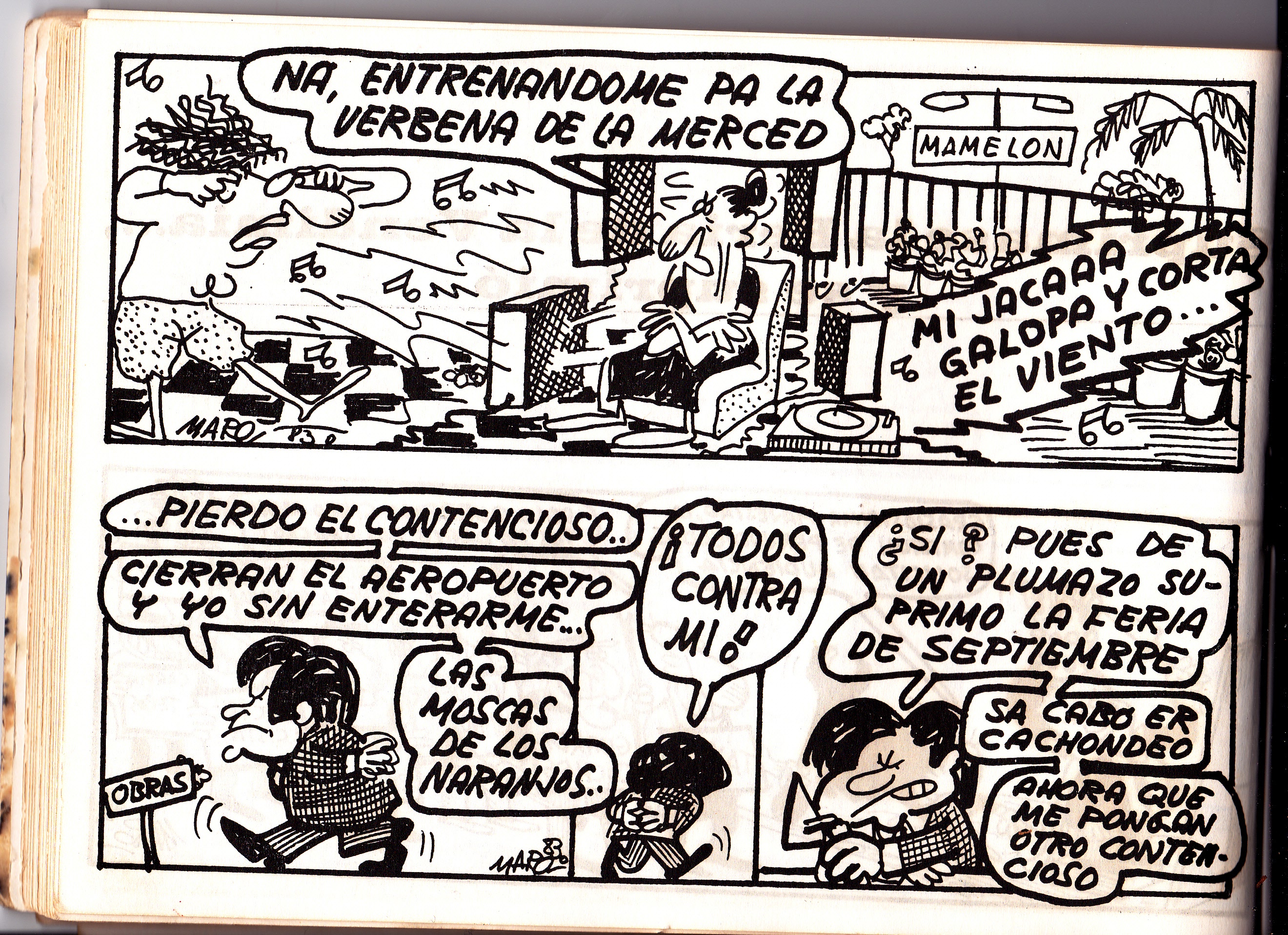 Seguimos con las tiras de Maro en La Voz del Sur en el año 1984. En esta ocasión las pintadas, la mugre, las palmeras y la desaparición de la Feria de la Vendimia son los temas que copan estas páginas.