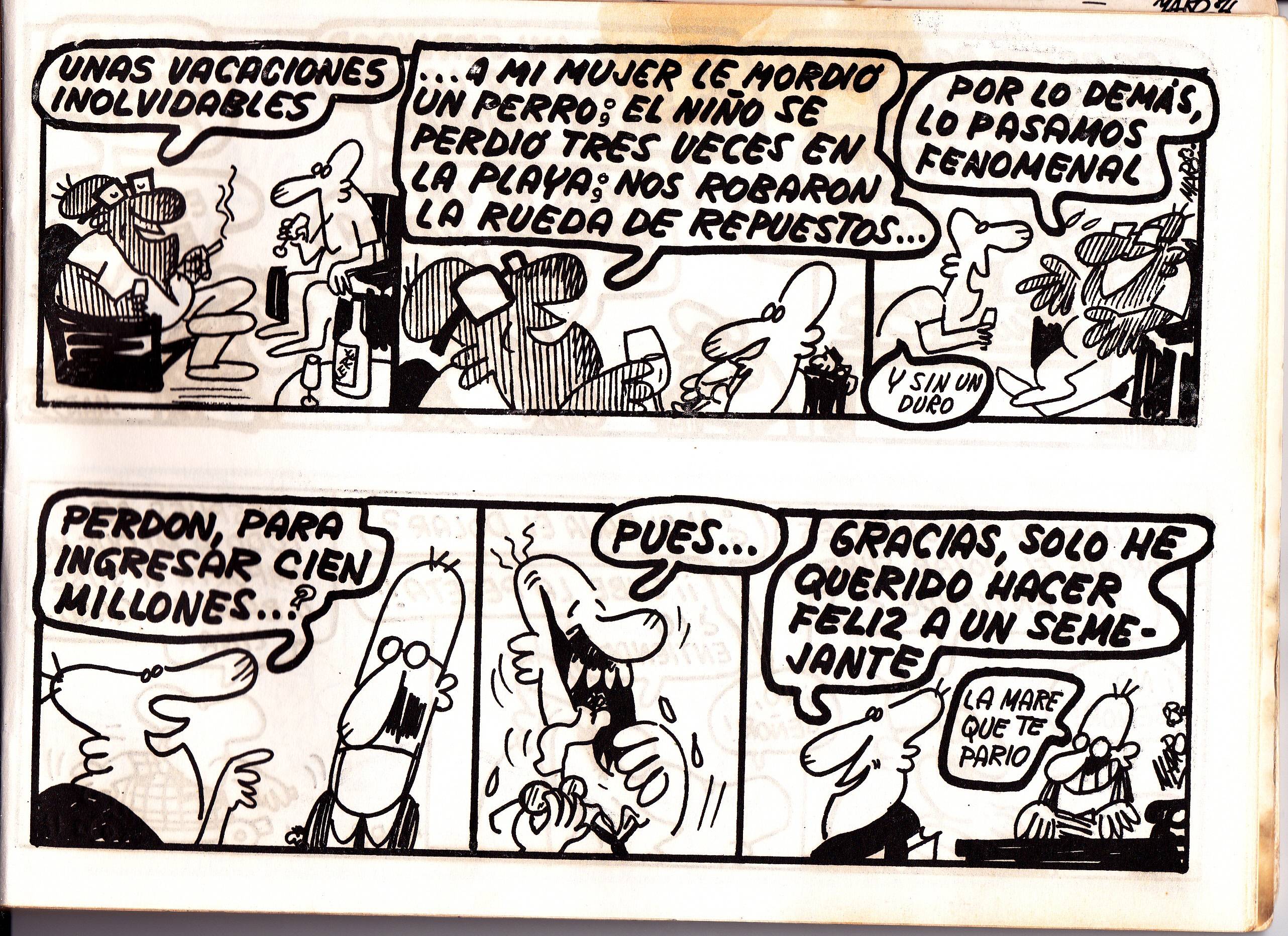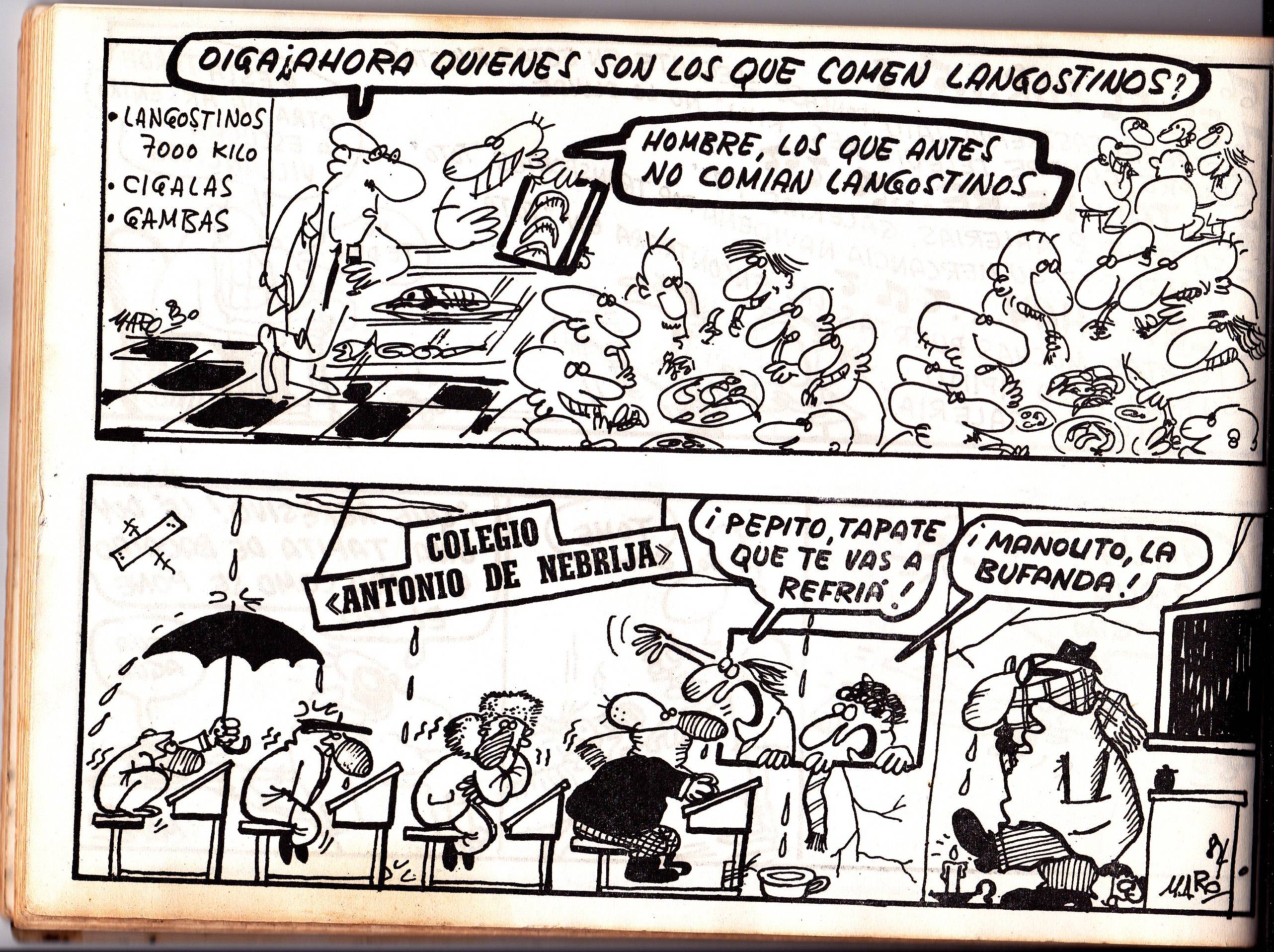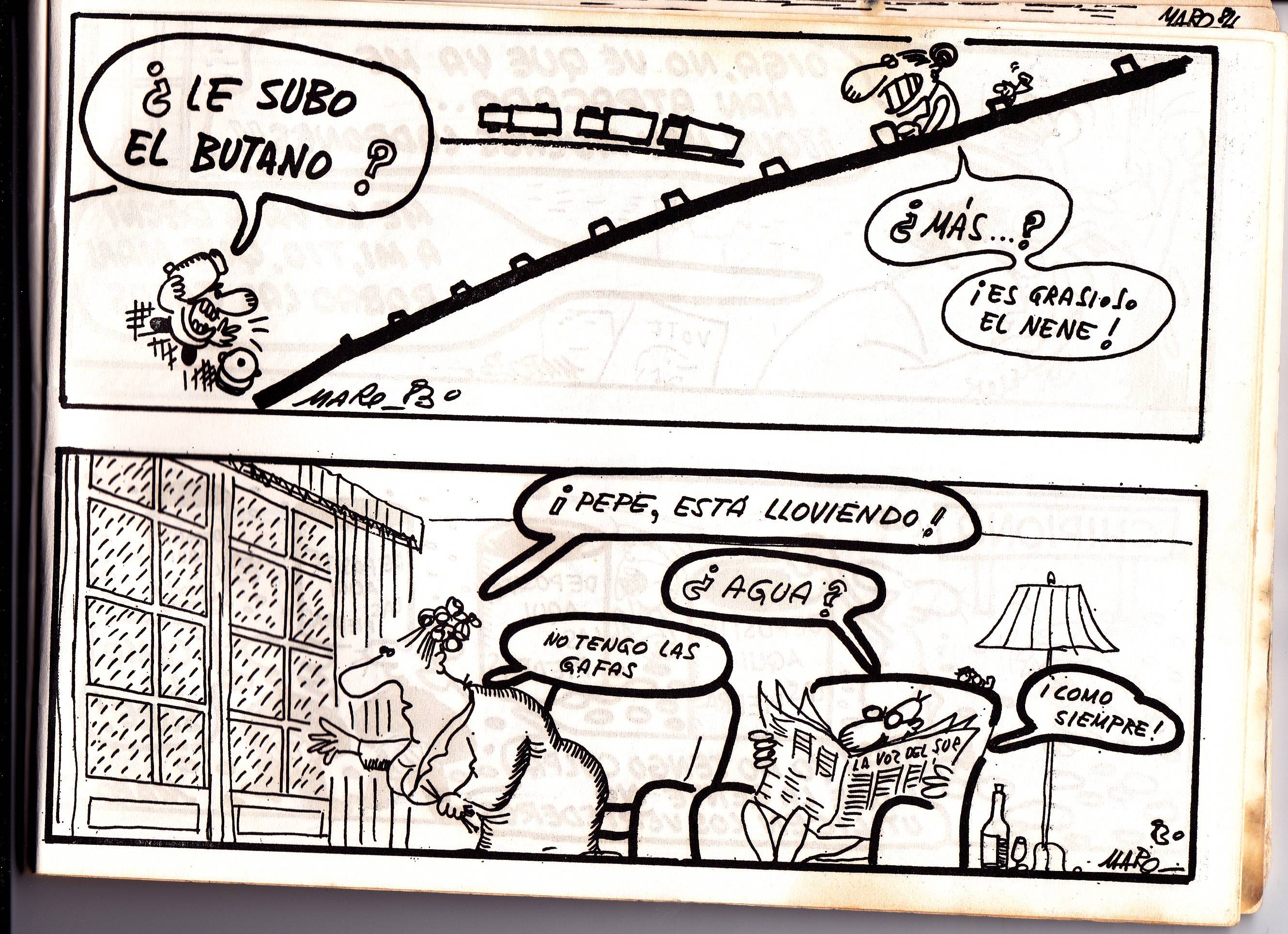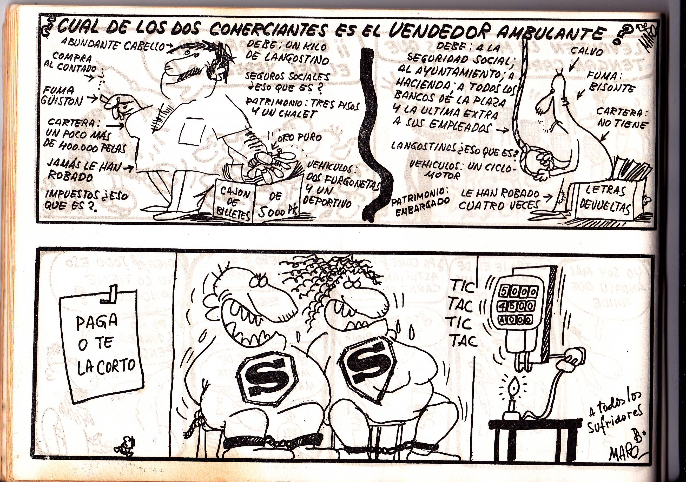 Terminamos la publicación de Las tiras de Maro en La Voz del Sur: Jerez en 1984 con estas últimas páginas en las que encontramos sátiras de sorprendente actualidad. Andaluces levantad... vuestro carné del paro. Y si es para ir a ver al Deportivo —ya no sabemos a cuál— pues también.