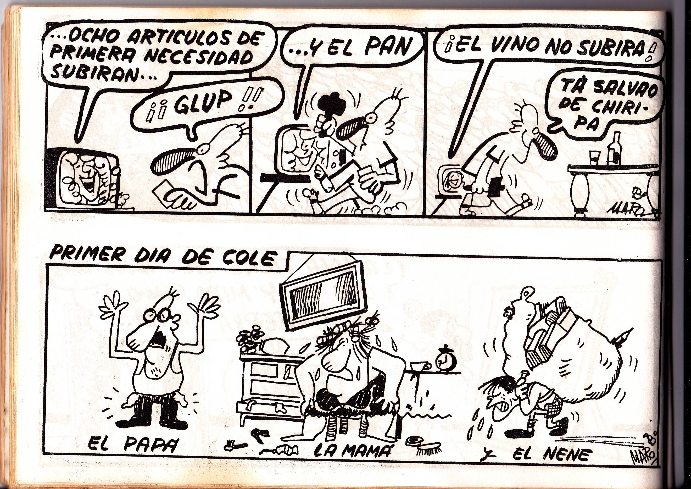 ¡La televisión sigue siendo un medio de difusión cultural, el casco la única prenda obligatoria y el agua... vino! No han cambiado mucho las cosas: con peseta o con euro, suba la gasolina o el butano, los problemas recaen sobre los mismos de siempre. Los problemas, las goteras... y todo tipo de deficiencias. En ocasiones con Maro veo el presente. ¿De verdad han pasado 33 años? Juzguen ustedes.