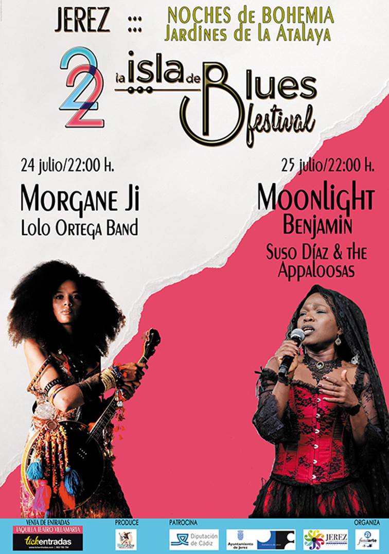 La XXII edición del Festival La Isla del Blues tendrá lugar los días 24 y 25 de julio, por primera vez, en los Jardines de la Atalaya de Jerez, dentro del ciclo Noches de Bohemia, tras abandonar San Fernando, ciudad donde siempre se había asentado. La fuerza multicultural y los rimos de guitarra, bajo y batería invadirán el escenario gracias a las voces de diversos artistas internacionales. El 24 de julio, a las 22.00 horas será el turno de Morgane Ji y de Lolo Ortega Band.