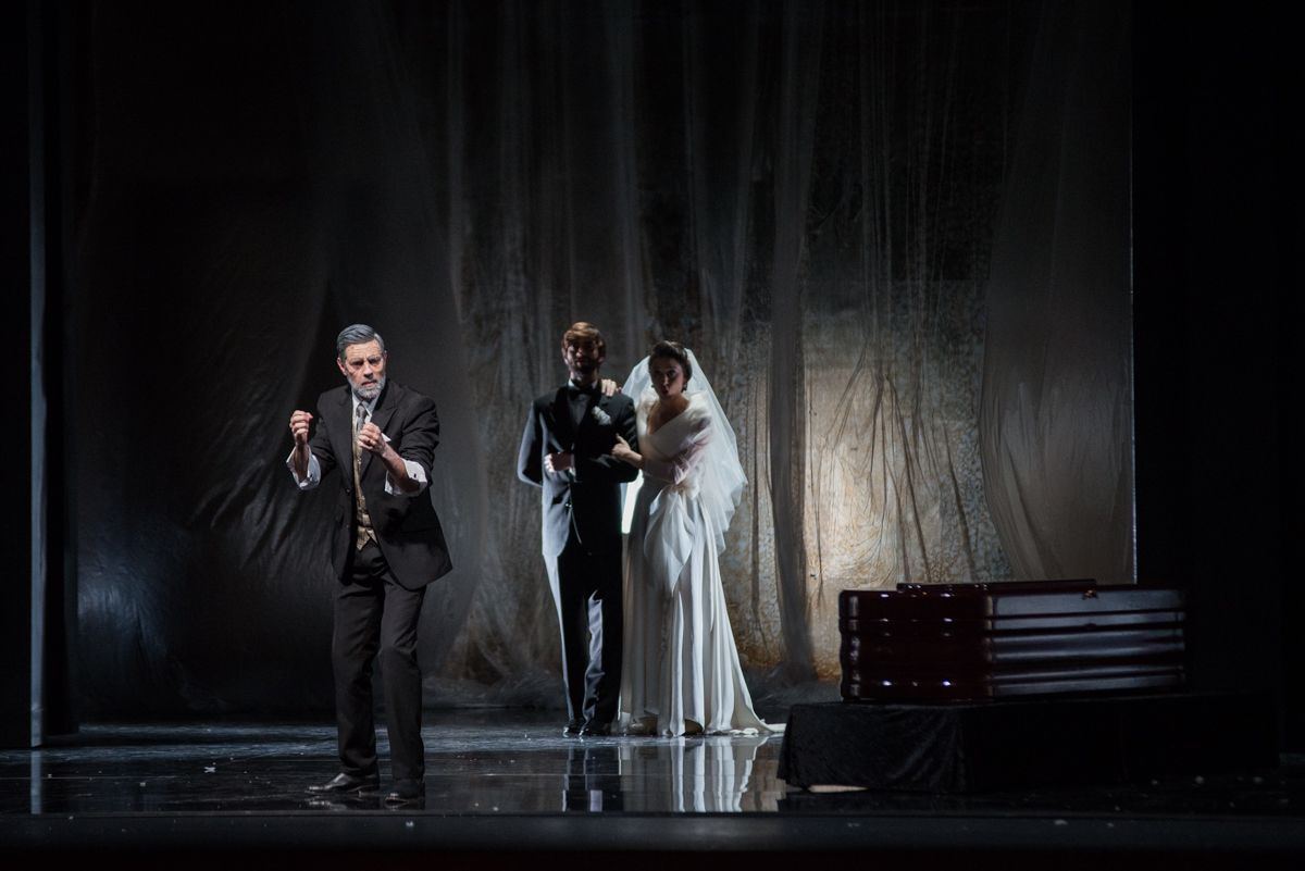 Orfeo ante el féretro de su difunta esposa, en un momento del estreno de la ópera de Gluck en Villamarta. FOTO: MANU GARCÍA