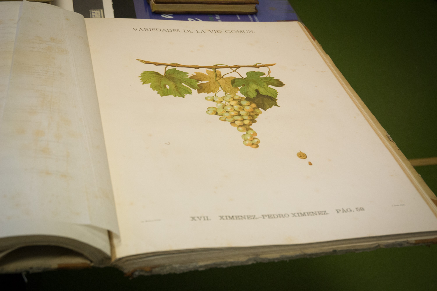 En la ciudad del vino no faltan ejemplares únicos en Andalucía sobre el cultivo de la vid. Poco usuales, magníficos para cualquier investigador que trate sobre la viticultura, la biblioteca cuenta con piezas recogen los antiguos estudios sobre la vid que ahora tiene un valor patrimonial enorme, plagados de dibujos de las distintas variedades de uva que hay en Andalucía, porque está centrado en la comunidad. Estos libros de lujo poseen grandes grabados pensados para que estuvieran en instituciones importantes o en casa de personas muy representativas. La tirada de la edición era muy pequeña porque lo tenían personas con un alto poder adquisitivo. Como sucede con muchas otras piezas de la biblioteca el valor es difícil de cuantificar. En una subasta puede alcanzar cifras astronómicas si un bibliófilo puja o no, pero el valor patrimonial es mayor que el material.