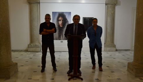 La exposición que fue inaugurada el jueves nos muestra los frutos de un proyecto creativo llevado a cabo por un fotógrafo, Miguel Ángel González, y un pintor, David Saborido. La trayectoria de los dos artistas es un buen ejemplo de compromiso con la obra, con la cámara o con el lienzo, compromiso ético y estético que, como dice Félix Ovejero Lucas, constituye el mejor criterio para reconocer a los verdaderos artistas. Y es ese afán investigador el que les ha llevado a coincidir y a plantearse un nuevo reto. Miguel Ángel González nos explicó cómo nació la idea de este trabajo: “David Saborido en casa de una amiga, Almudena Plaza, me invita a participar en este proyecto: que a través de una palabra hiciéramos un proceso de construcción artística en el que cada uno mostrara libremente un concepto, una idea, sobre esa palabra. En este tiempo no podemos vernos, no podemos compartir ideas ni pensamientos. Y hasta hace sólo una semana no hemos visto nuestros trabajos. Lo que van a ver ustedes es fruto de ese encuentro, de esa cena mágica”. La palabra es “origen”.