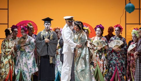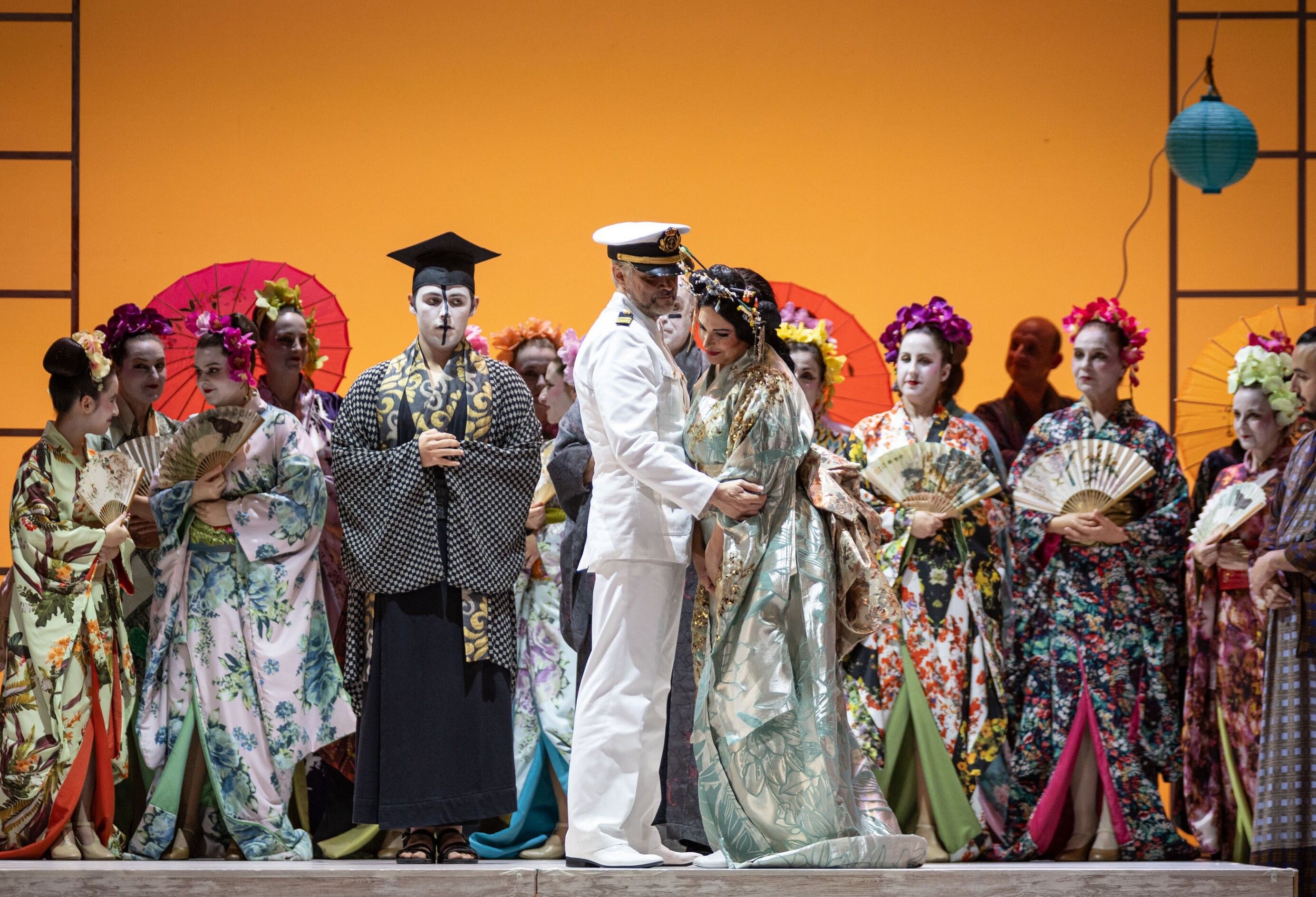 Madama Butterfly (Giacomo Puccini). Teatro Villamarta, 1º función, 26 de enero de 2024. Producción del Teatro Villamarta. Ainhoa Arteta (Cio Cio San), Enrique Ferrer (Benjamin Pinkerton), Ángel Ódena (Sharpless), Cristina del Barrio (Suzuki), Manuel de Diego (Goro), Javier Castañeda (tío Bonzo), Mario Salas (príncipe Yamadori), Nuria García Arrés (Kate Pinkerton), Juan Manuel Ramírez (tío Yakusidé), Gregorio García (Comisario Imperial), Francisco Díaz (Oficial del Registro Civil), Antonia M. Amat (la madre de Cio-Cio-San), Susana Pizarro (una tía de Cio-Cio-San), Villar García (una prima de Cio-Cio-San), Leo Contreras (el hijo de Cio-Cio-San). Coro del Teatro Villamarta. José Miguel Román y Rebeca Barea (dirección del coro). Orquesta Filarmónica de La Mancha. Francisco Antonio Moya (dirección musical). Pablo Viar (dirección de escena), Jesús Ruiz (escenografía y vestuario), Eduardo Bravo (iluminación).