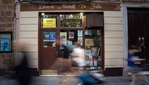 Aquella empresa se trasladó a la calle Ancha y el librero que atendía en la mesita abrió un espacio propio: Librería Manuel de Falla, en una acera perpendicular de la misma Plaza Mina. Mis estudios de Filología me llevaron inevitablemente a seguir frecuentando las librerías gaditanas y particularmente las del casco antiguo. Las continuas visitas me llevaron a conocer el nombre del librero: Juan Manuel, Juan Manuel Fernández. Y conocimos no solo a aquel hombre que atendía en la mesita, sino también a Manu, que tantos años estuvo a su lado y que nos dejó siendo tan joven; a Mari, su mujer, a sus dos hijas, a su yerno, a sus nietos… El mundo de las librerías es la realidad cercana en la Manuel de Falla. Por fortuna, mi empleo me ha permitido pasar a diario por delante de ese escaparate en el que tantas veces había pegado la nariz.