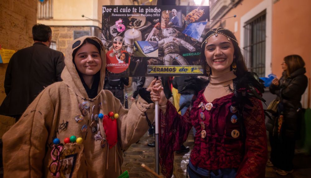 María González Lozano y su hermana Belén nacieron en Cádiz y han vivido desde siempre en Jerez. Una tiene 18 años y la otra, 15. Son conocidas en el mundo del Carnaval gaditano por impulsar esa modalidad tan de moda como es la de los romanceros. Desde bien pequeñas se decantaron junto a su padre, Rafael, por este arte tan gaditano en el que no abundan los menores de edad, casi siempre más atraídos por salir en chirigotas, comparsas o cuartetos.
