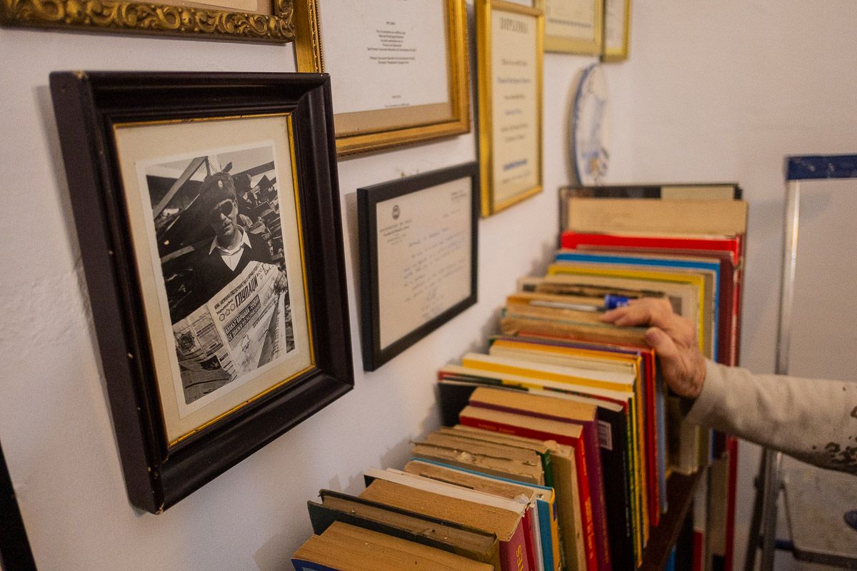 Las paredes de su antiguo despacho están llenas de premios y reconocimientos que fue acumulando durante su extensa trayectoria, otorgados por periodistas andaluces, por los militares de la base aérea de La Parra —a los que dedicó un buen número de viñetas— o conseguido en un certamen internacional de humoristas gráficos celebrado en Corea del Sur. Hay de todo. “Pero él no le daba importancia a los premios”, cuenta Mami, “era tímido, solo quería trabajar”. Como lo define ella, “era corto de genio”.
