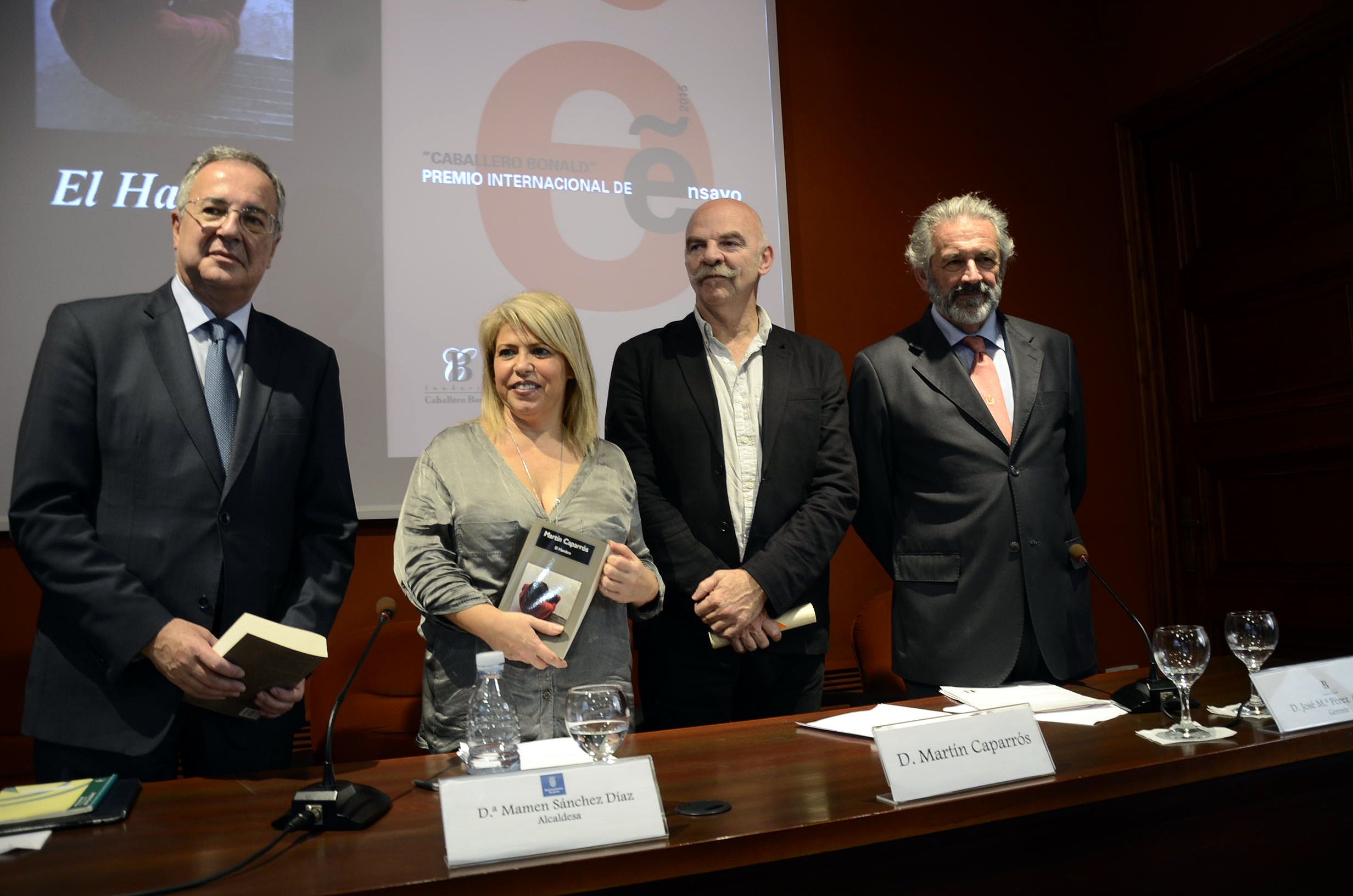 El periodista y escritor Martín Caparrós ha recibido en la jornada de este viernes el Premio Internacional de Ensayo Caballero Bonald 2015 por su ensayo El Hambre, en un acto en el que ha estado acompañada por la alcaldesa de Jerez, Mamen Sánchez, el director general de la Fundación Biblioteca Virtual Miguel de Cervantes, Manuel Bravo Lifante, el gerente de la Fundación Caballero Bonald, José María Pérez y el secretario del jurado del premio, Fernando Domínguez. La entrega del galardón se enmarca dentro del XVIII Congreso de la Fundación Caballero Bonald, dedicado a la música y la literatura.