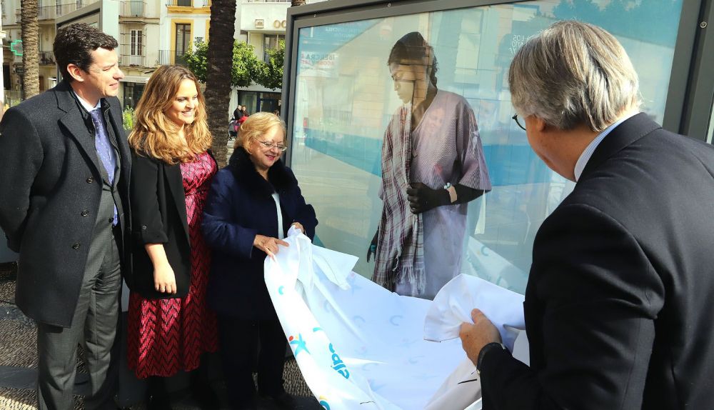 El teniente de alcaldesa de Dinamización Cultural, Francisco Camas, ha inaugurado en la plaza del Arenal la exposición Tierra de Sueños de Cristina G. Rodero, que se mantendrá expuesta hasta el próximo 3 de marzo, junto a representantes de las entidades organizadoras.