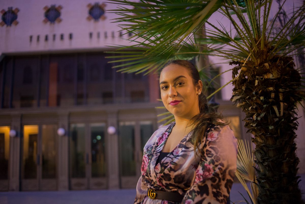María Terremoto posando frente al Teatro Villamarta. FOTO: MANU GARCÍA.
