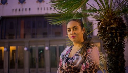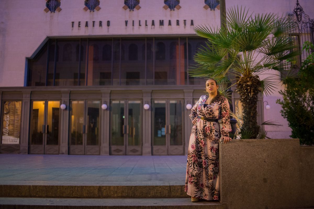 La joven cantaora posando frente al Teatro Villamarta. FOTO: MANU GARCÍA.