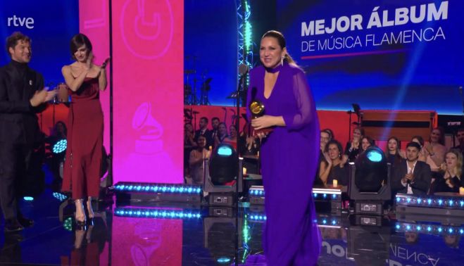 Dedicando el premio a "todos mis compañeros para seguir luchando por este flamenco que es lo más bonito que hay", la cantaora de San Fernando suma así el quinto Grammy Latino a su amplio y gran listado de reconocimientos, sin olvidarse de "tanta gente de mi tierra que ha hecho que el flamenco esté hoy donde está, que por desgracia no es de mayorías, pero sí de categoría".