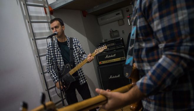 Pablo ensayando. FOTO: MANU GARCÍA.Influido por la magia de Kurk Cobain, Pablo empezó acariciando el grunge. Y cada día de sumerge en las composiciones de los discos de rock de los años 80 y 90. Pero también punk, hardcore melódico... Y en la actualidad, se deja llevar por el indie, slowcore... Recuerda que con 16 años compuso su primera canción con su primera banda, bautizada como The Bottles Stomps. "El tema se llamaba The acid girl, iba sobre una chica, la típica historia adolescente de la chica que te gusta, lo típico que haces con 16 años", ríe. No obstante, su mensaje ha cambiado mucho desde entonces.