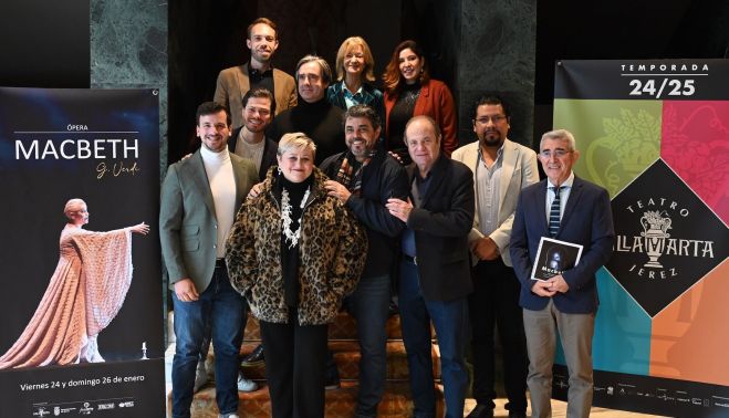 Parte del elenco artístico y técnico de Macbeth ha presentado este martes en el vestíbulo del Teatro Villamarta la revisión del libreto de Verdi en una producción que el propio escenario jerezano estrenó hace más de década y media, y que ahora llega renovada en cuestiones de iluminación y vídeo-escena. No obstante, cada producción, cada función, es única y hasta quienes ya vieron la primera versión de esta producción pueden volver a sorprenderse. Las entradas están a la venta desde 30 euros, aunque hay descuentos para amigos del Villamarta, menores de 30 años e iniciación a la ópera.