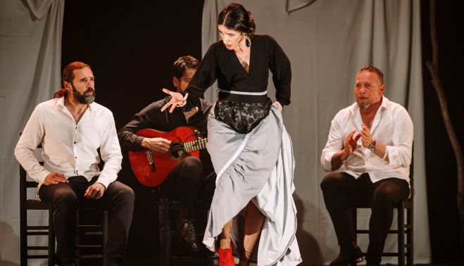 La bailaora Irene Olivares se estrenaba en el Festival de Jerez con una fantasmagórica soleá y un control del poder de lo que en la India llaman mudras. Le cedió al tacón un solo y un acompañamiento de fandango robado a la guitarra de Santiago Moreno, autor de la música y los textos. En materia de cante, Wilo del Puerto osará la petenera (lo lúgubre obliga), mientras que Eva del Cristo tiene el pellizco que tenía Fosforito en un taranto que habla de cantar un taranto, que ejecutará a palo seco. Porque, además de esas dos Andalucías, la de la alegría triste y la de la seguiriya triste, el espectáculo se las arregla, en su brevedad (poco más de una hora), para conectar dos Andalucías aún más alejadas con una sesión de cantes levantinos, como aquel de "estará bebiendo vino y luego vendrá borracho". El cante, por lo general, es clásico, pese al ocasional rap.