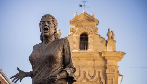 “¿Ves esto? Es el brillo de los ojos y no se opera". Este célebre frase resume bien la personalidad de una de las jerezanas más internacionales, Lola Flores, la camaleónica artista que fue un icono en vida y aun hoy no para de ser noticia por las series, anuncios, documentales o libros que no paran de rescatarla y actualizarla. El monumento, realizado por Víctor Ochoa, está ubicado en pleno barrio de San Miguel, cruce de caminos entre el Jerez histórico y el gitano. Como decía Lola: "He dado la vuelta al mundo y a mí que me perdonen pero como Andalucía, son tantas cosas bonitas que tiene... es una cosa que no se puede tocar, tenemos que mirar por ella. Esos rincones, esa Giralda, esa Jerez con sus calles 'shiquetitas', esa Catedral...". Hija de un tabernero, Lola demostró desde muy pequeña sus cualidades para el cante y el baile. Su admiración por Pastora Imperio le llevó a seguir con sus inquietudes hasta que conoció a Manolo Caracol, quien la tuvo en su compañía durante unos meses cuando apenas contaba con quince años. Toda la familia estuvo un tiempo en Sevilla hasta que recaló en Madrid, no sin antes conocer a otras figuras importantes de la canción como Estrellita Castro o el maestro Manuel López-Quiroga, quienes le animaron a seguir con su carrera, que estuvo llena de éxitos musicales y cinematográficos hasta el fin de sus días. Dónde: c/ Ramón de Cala