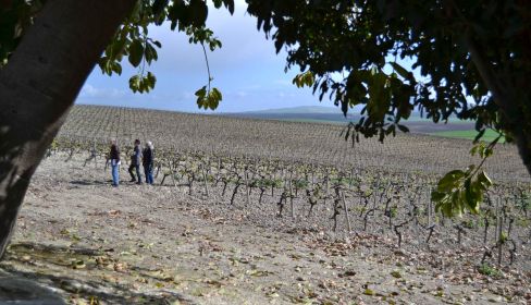 En plena primavera, en un momento único de la viña de Jerez por la aparición de los brotes verdes que crecen de la nueva cosecha, cerca de 50 personas, acompañadas por una copa de vino, escuchan con atención la lectura de poemas que versan sobre la vitivinicultura. "Quería escribir sobre la primera brisa cálida de marzo, ese aura que nos anuncia cada año el adelanto de la primavera. No es solo una brisa del sudoeste que viene del mar, salina y olorosa, atravesando los pagos de viñas", pronuncia el poeta Francisco Bejarano al leer su poema Una brisa cálida. Los artistas, como él, van delineando y ensalzando características propias de la Campiña de Jerez. Por ejemplo, Bibiana González-Górdon, lee un poema de su suegro Vicente Fernández de Bobadilla, en el que relata que se topa con un bienteveo, una torre de vigilancia dentro del viñedo: "Luego, muy luego, vi ante mis ojos alzarse contra el quieto cielo, en el argentado recorte de la luna, la gracia lacustre de un bienteveo".