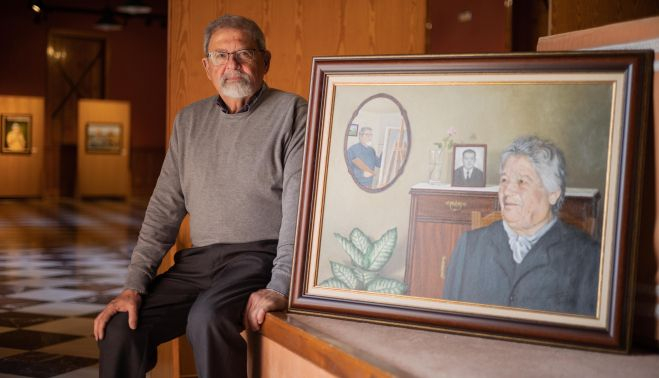 Durante varios años, Juan Manuel Sánchez Padilla ha guardado un secreto que ahora ha visto la luz. Se ha dado el caso de que su hermano, Francisco, haya ido a cenar a su casa, sin saber que en una habitación cercana guardaba un retrato que ahora forma parte de una exposición, junto a otros 16 cuadros de personajes que, para él, son “ilustres” de Jerez.